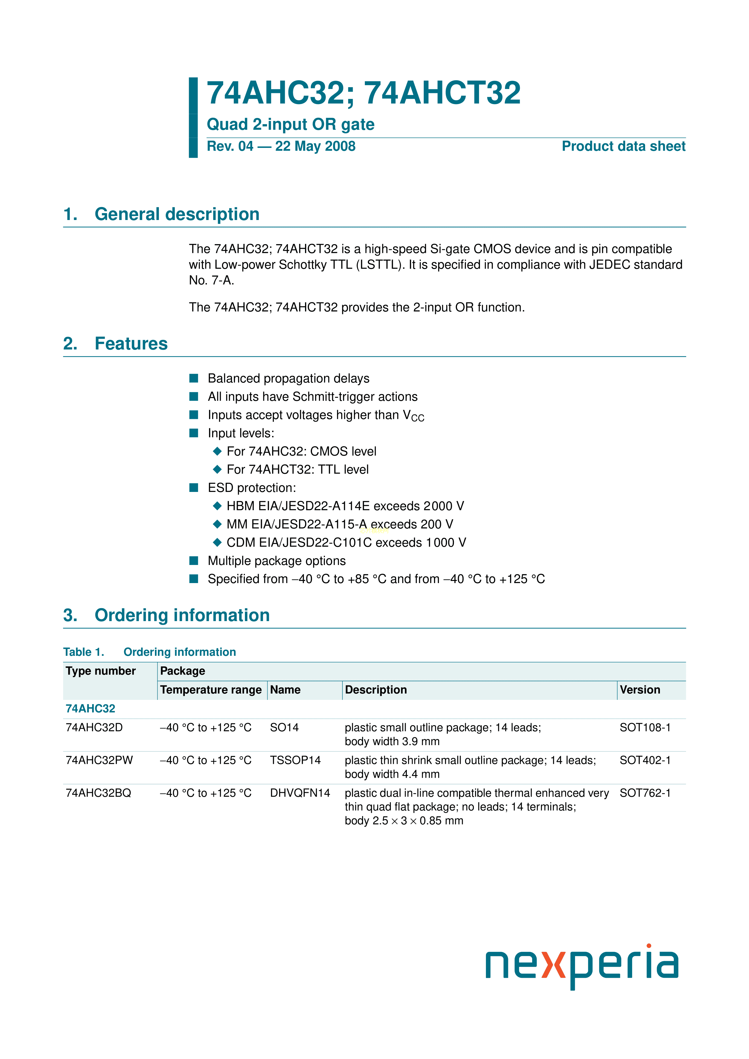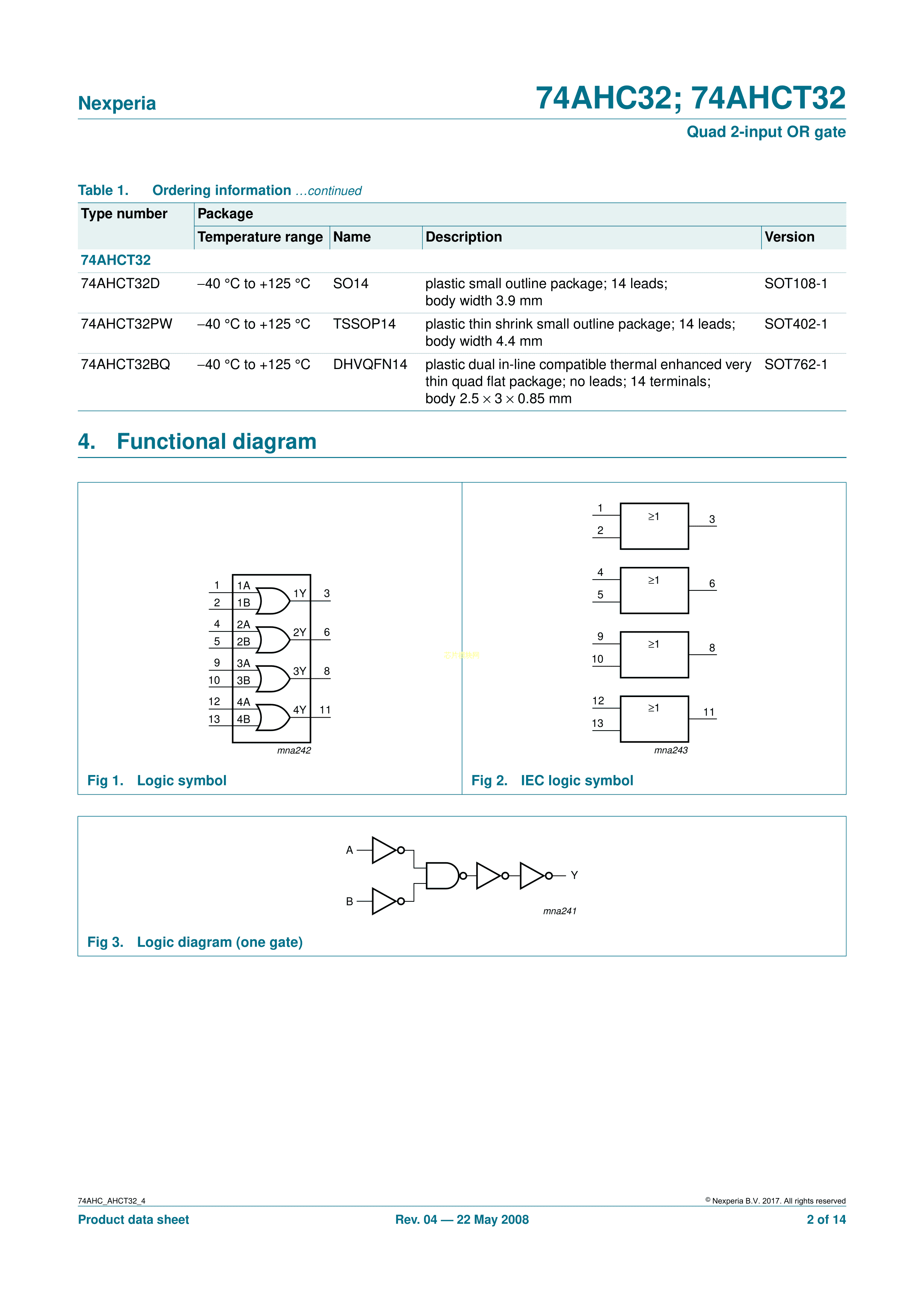 74AHC32PW118数据手册TSSOP-14封装Nexperia(安世)PDF规格书,中英文下载