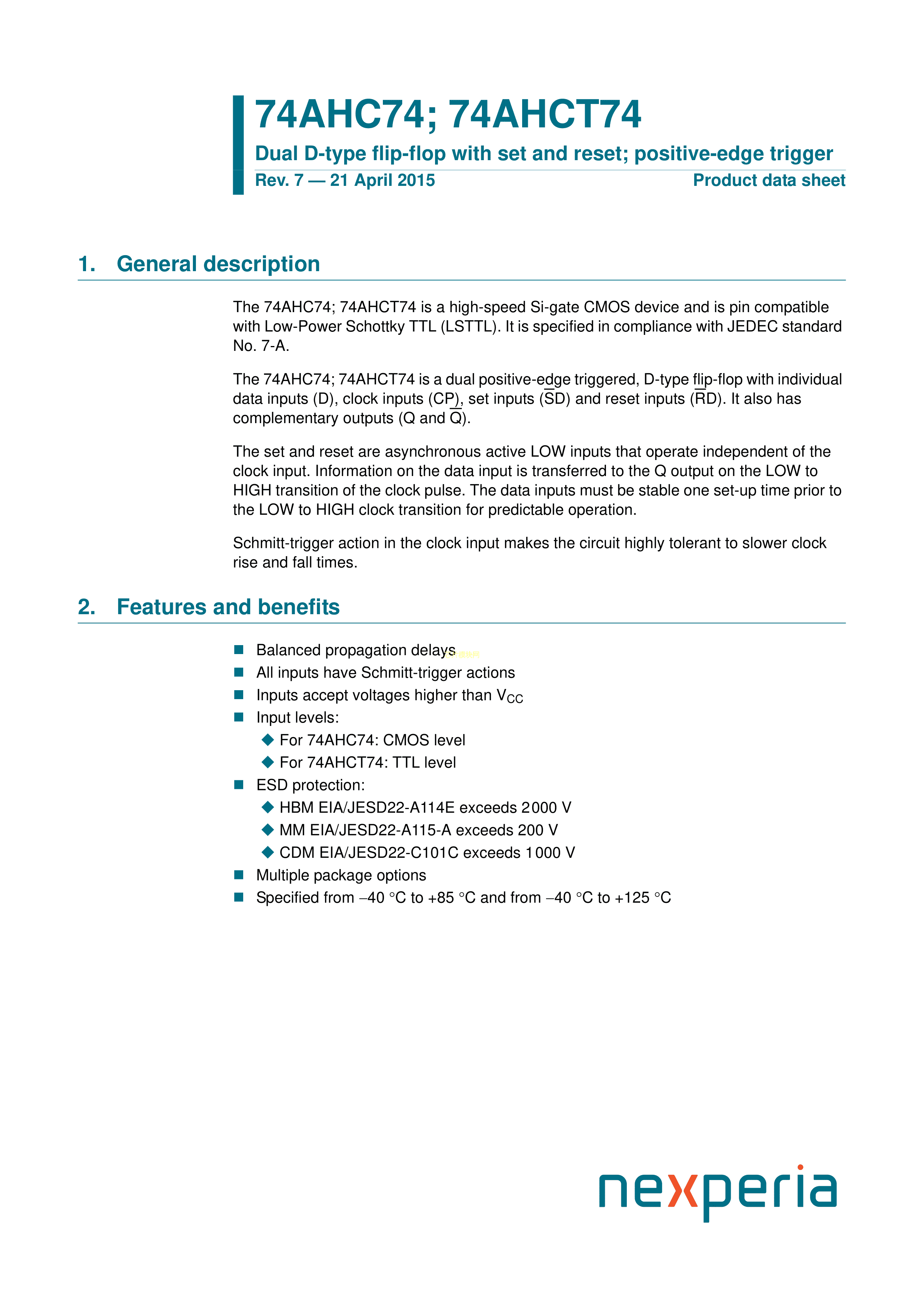 74AHC74D118数据手册SOP-14封装Nexperia(安世)PDF规格书,中英文下载