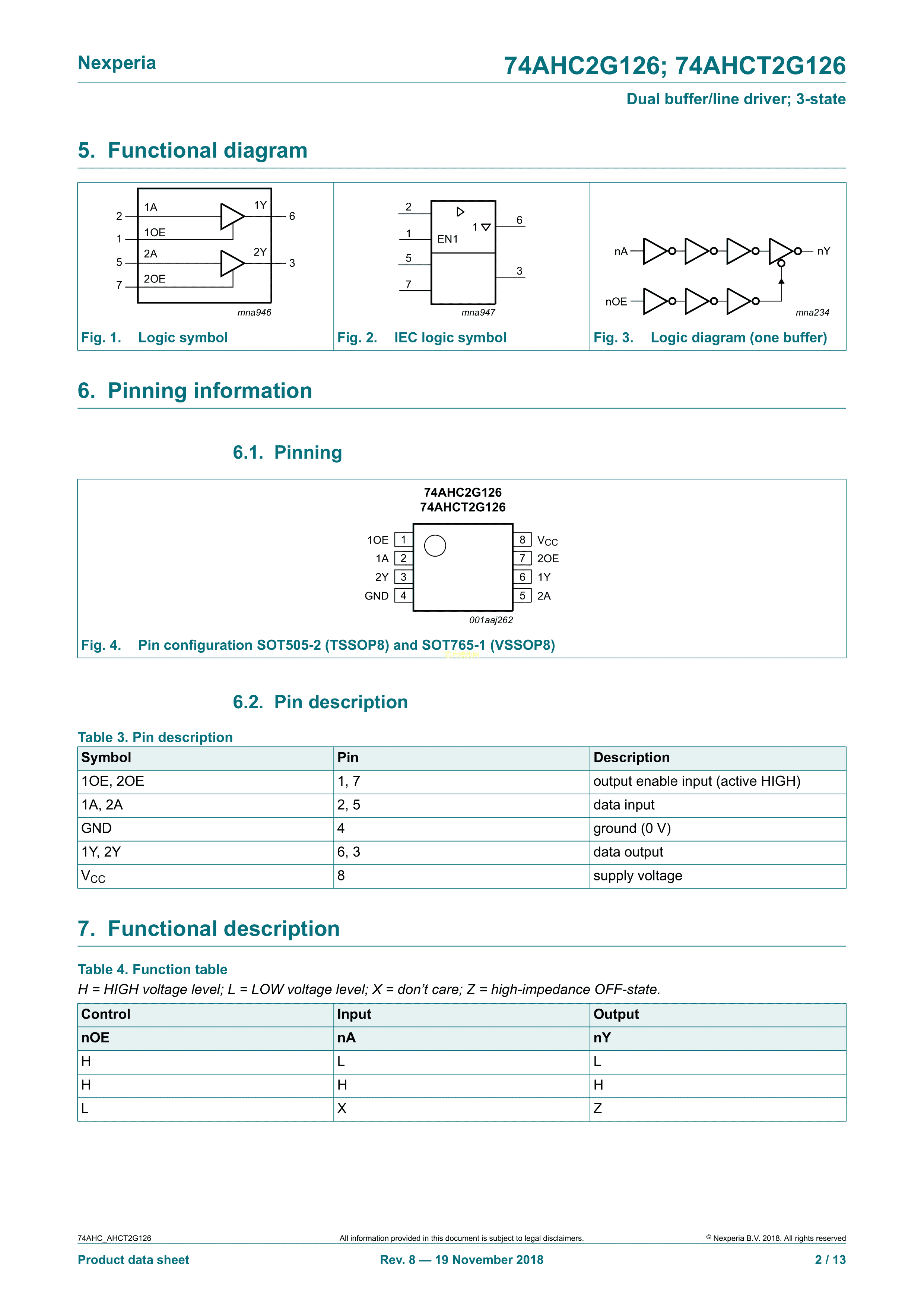 74AHCT2G126DC125数据手册VSSOP-8封装Nexperia(安世)PDF规格书,中英