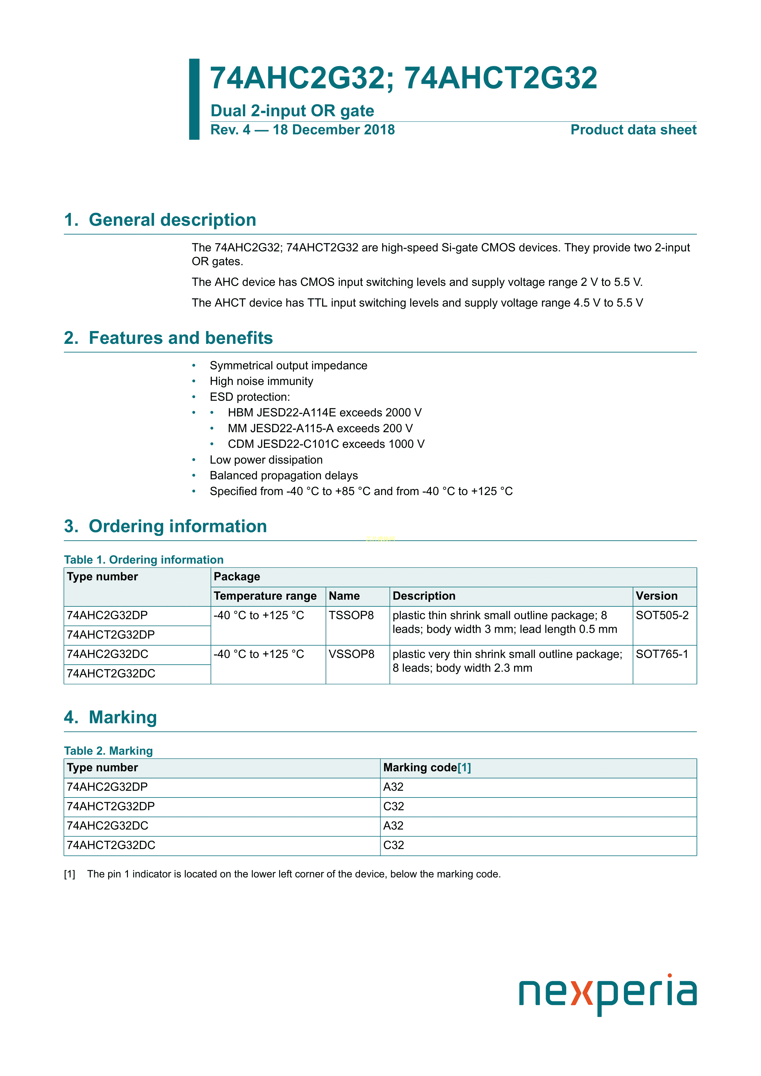74AHCT2G32DP125数据手册TSSOP-8封装Nexperia(安世)PDF规格书,中英文