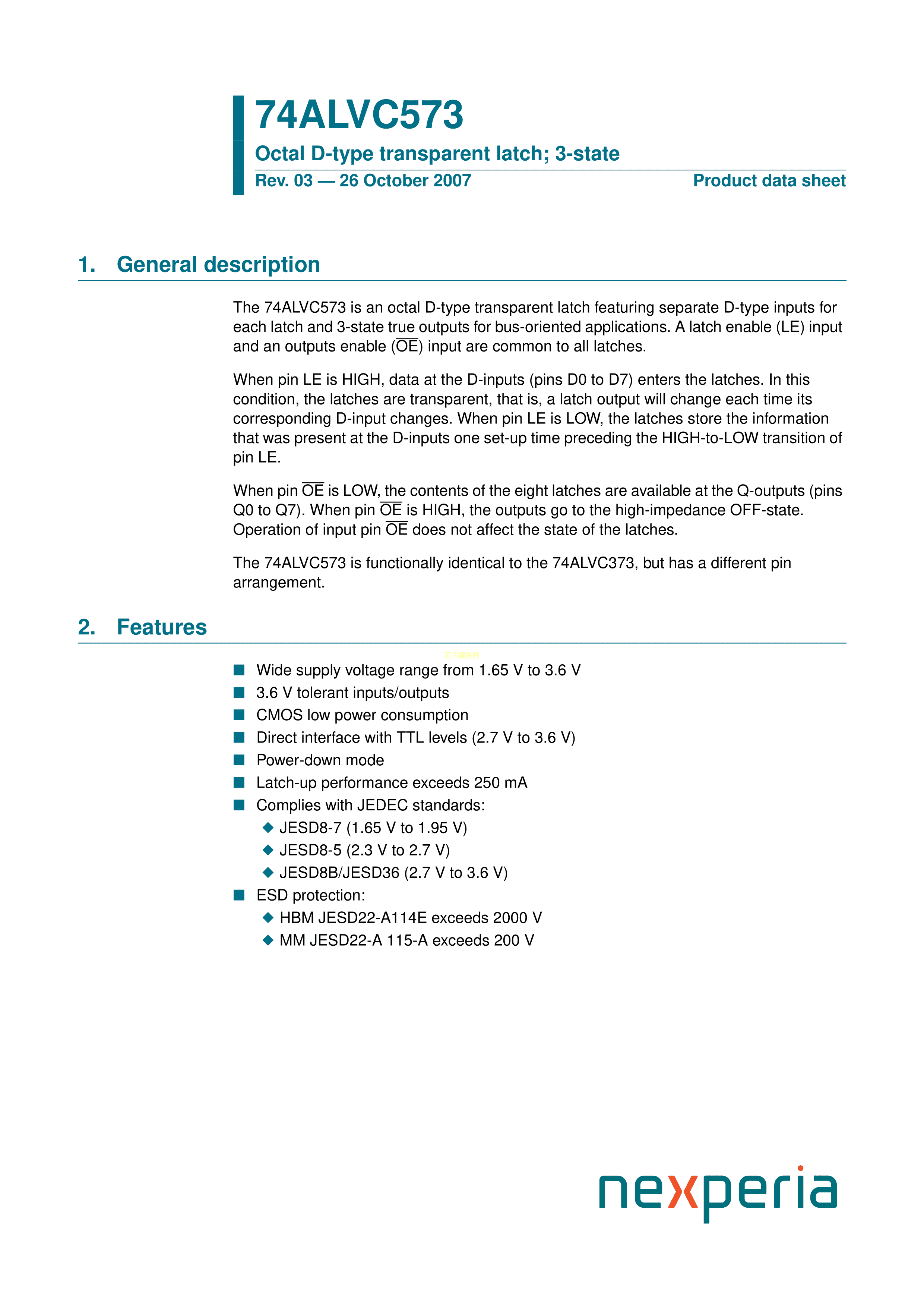 74ALVC573PW118数据手册TSSOP-20封装Nexperia(安世)PDF规格书,中英文