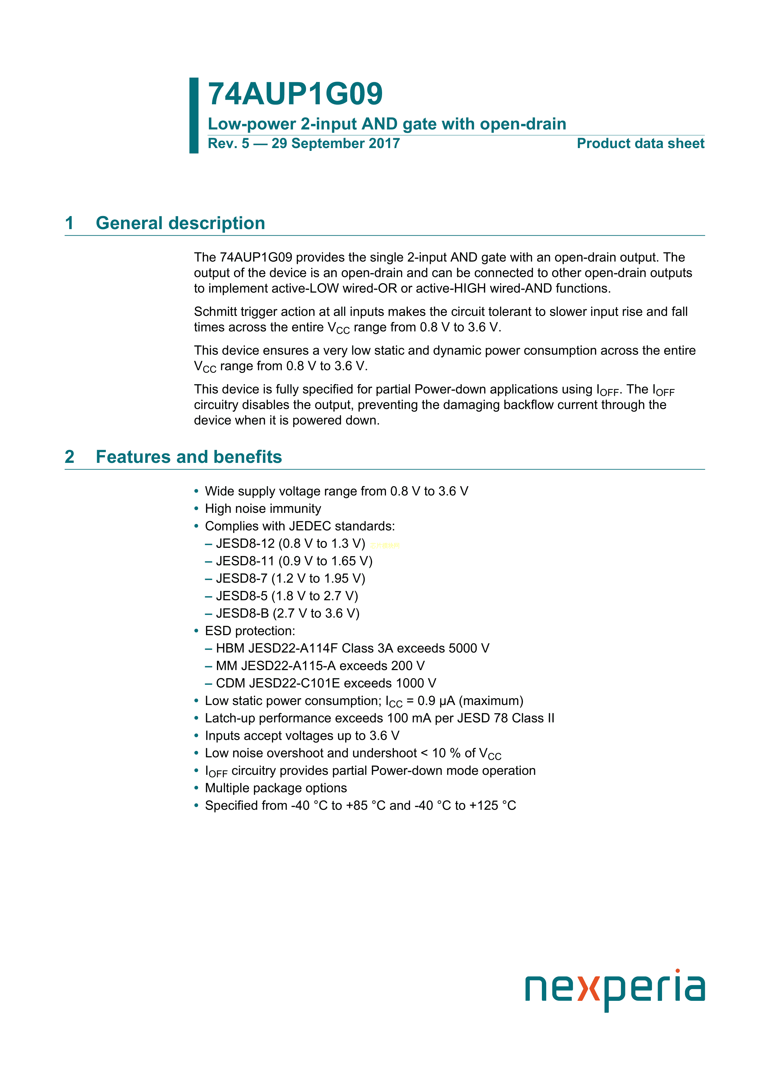 74AUP1G09GS132数据手册XSON-6封装Nexperia(安世)PDF规格书,中英文下载