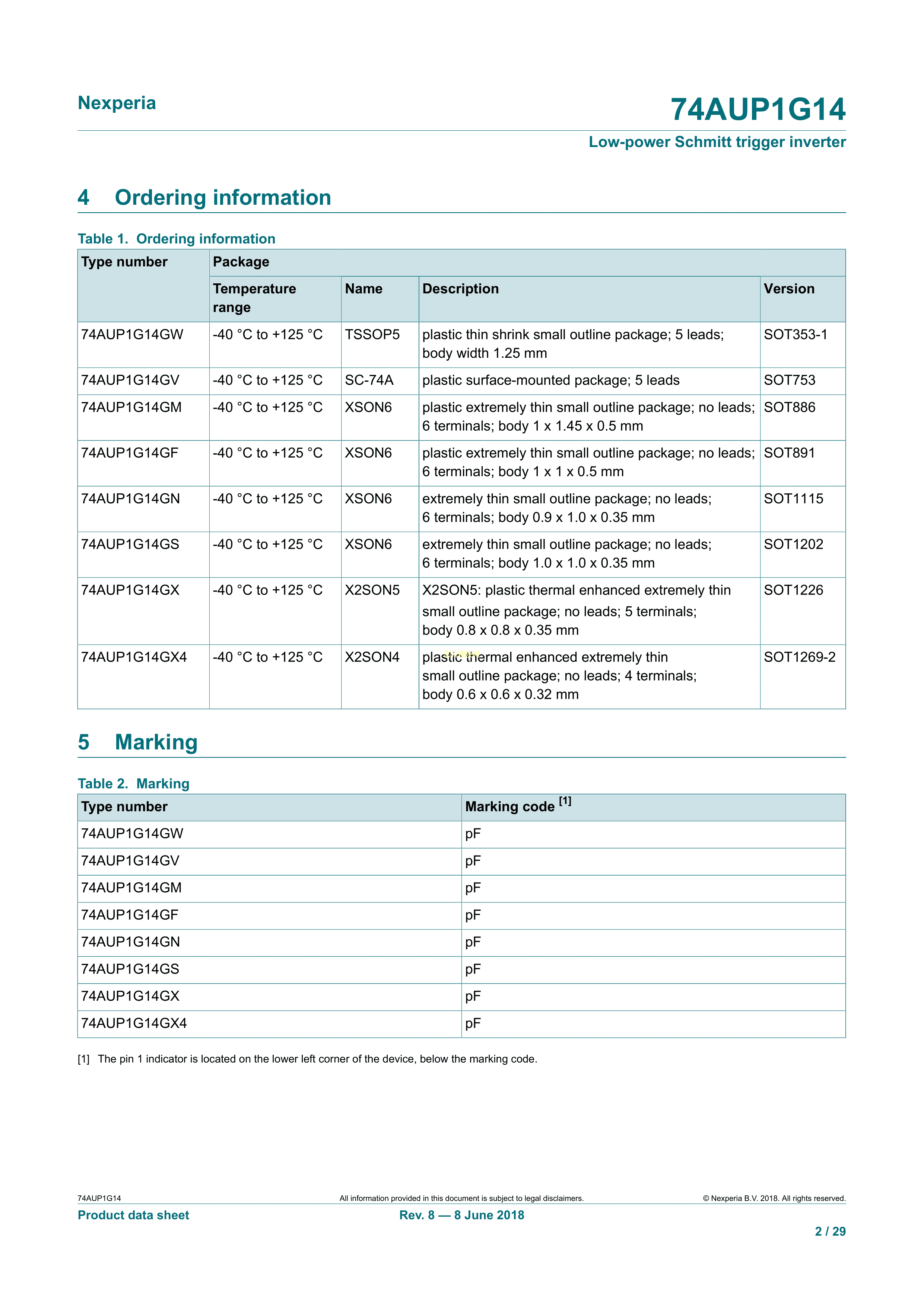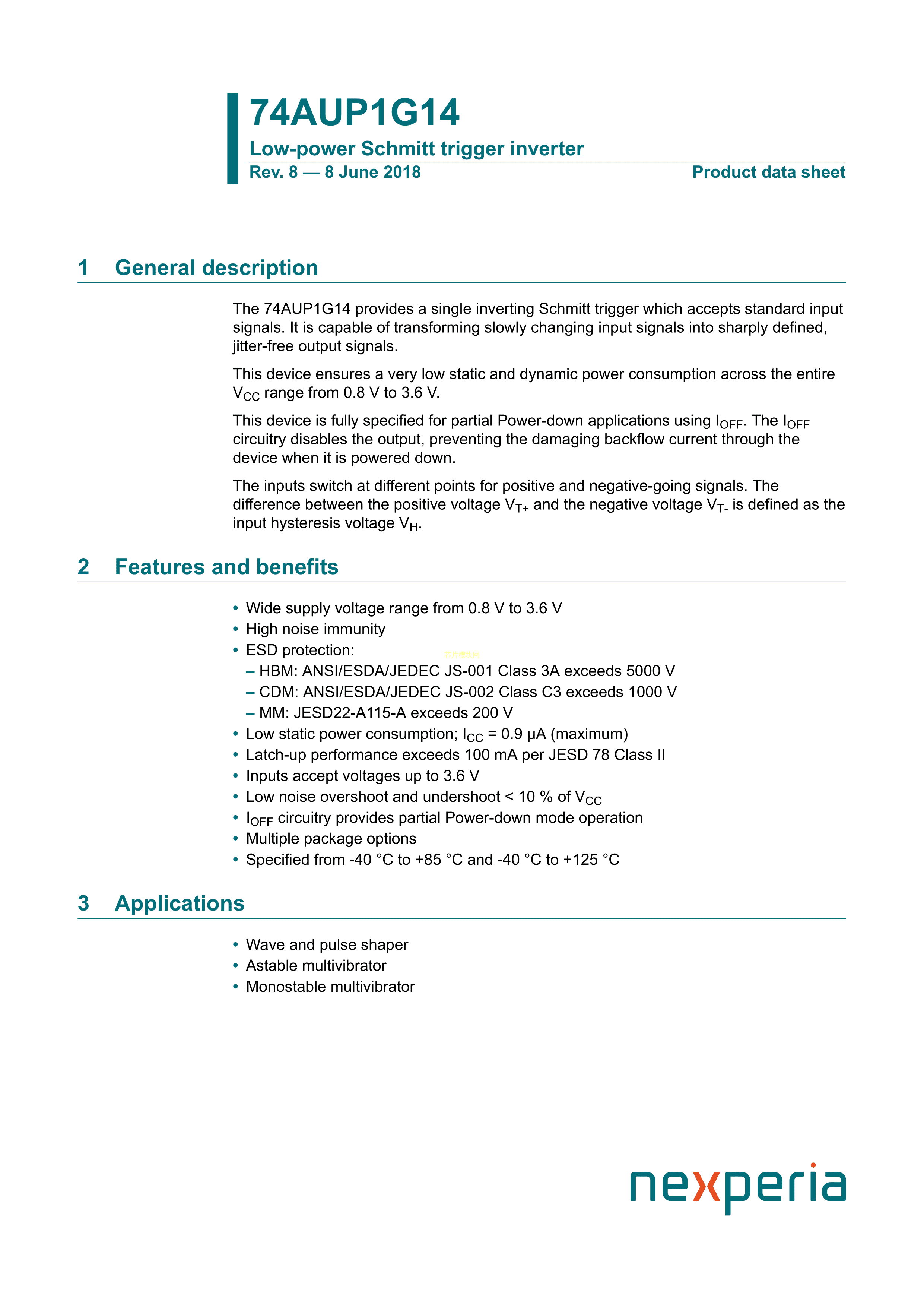 74AUP1G14GN132数据手册XSON-6封装Nexperia(安世)PDF规格书,中英文下载