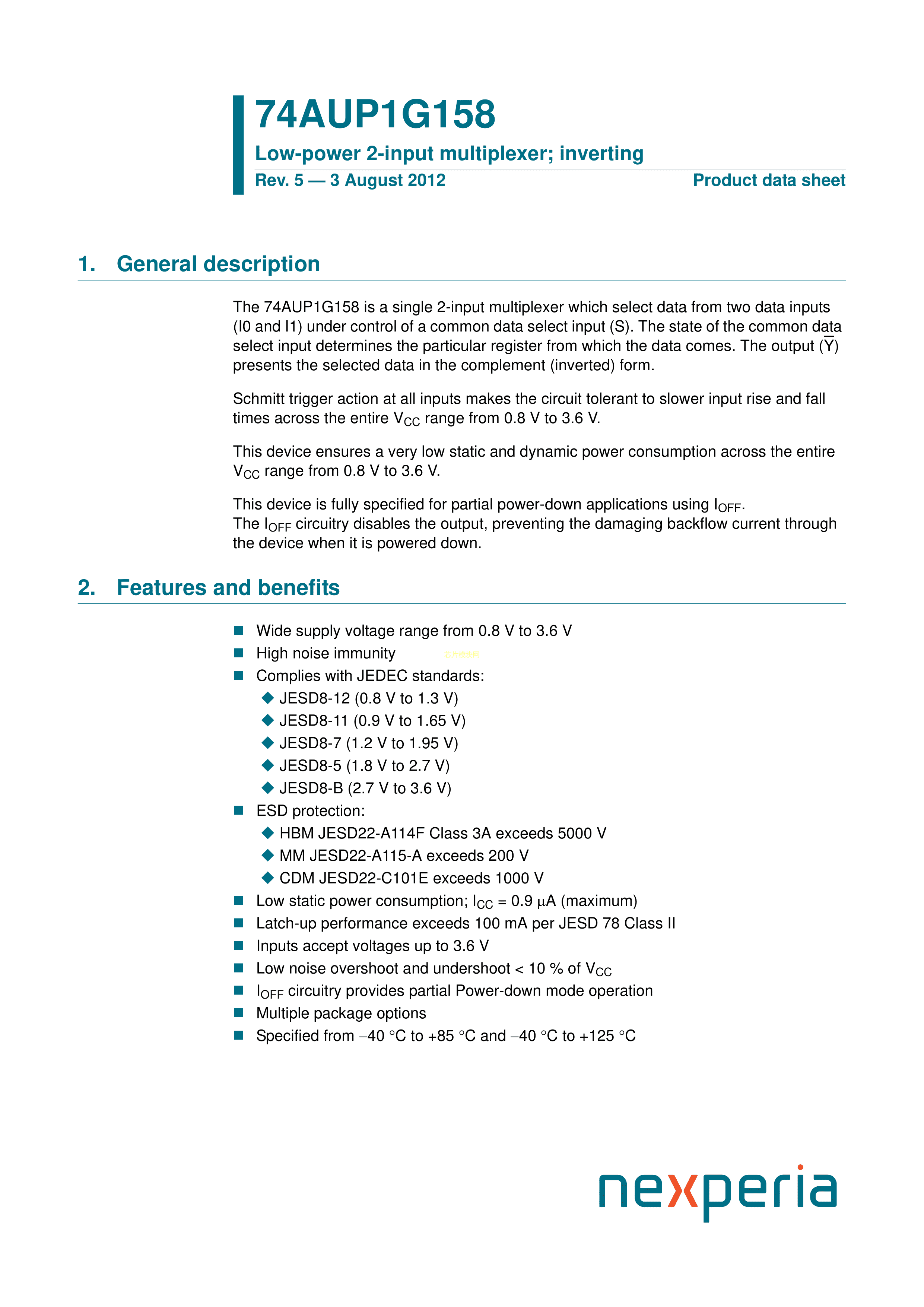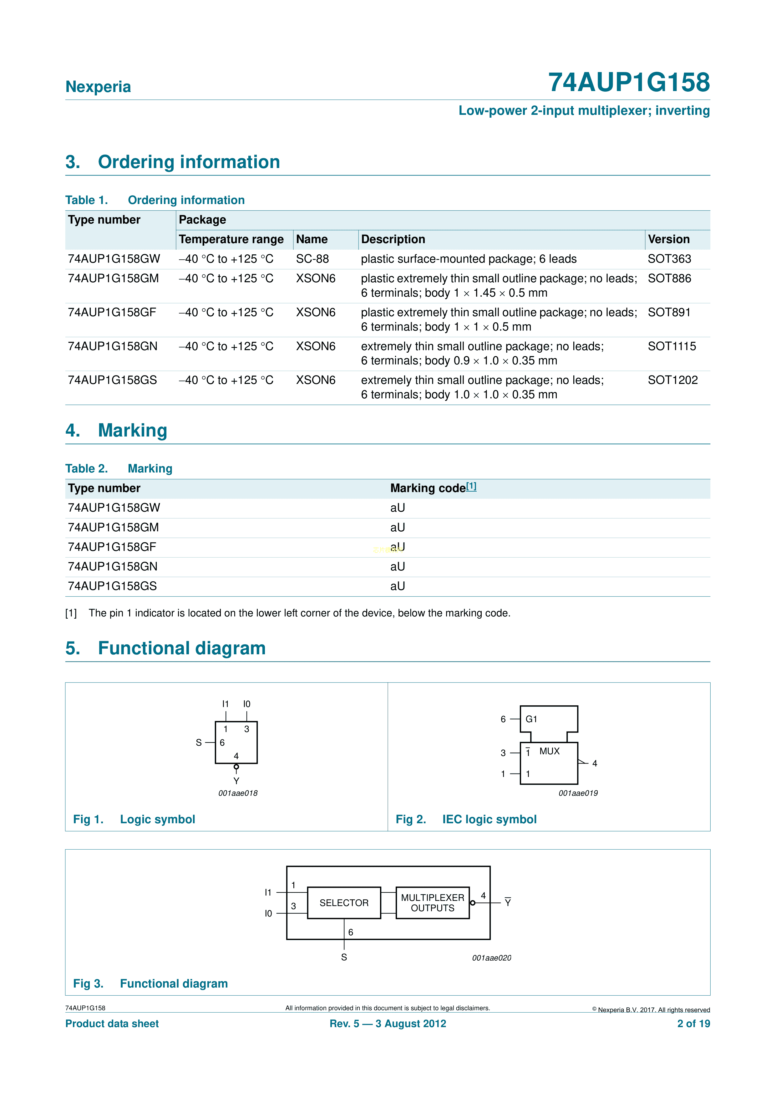 74AUP1G158GM115数据手册XSON-6封装Nexperia(安世)PDF规格书,中英文下