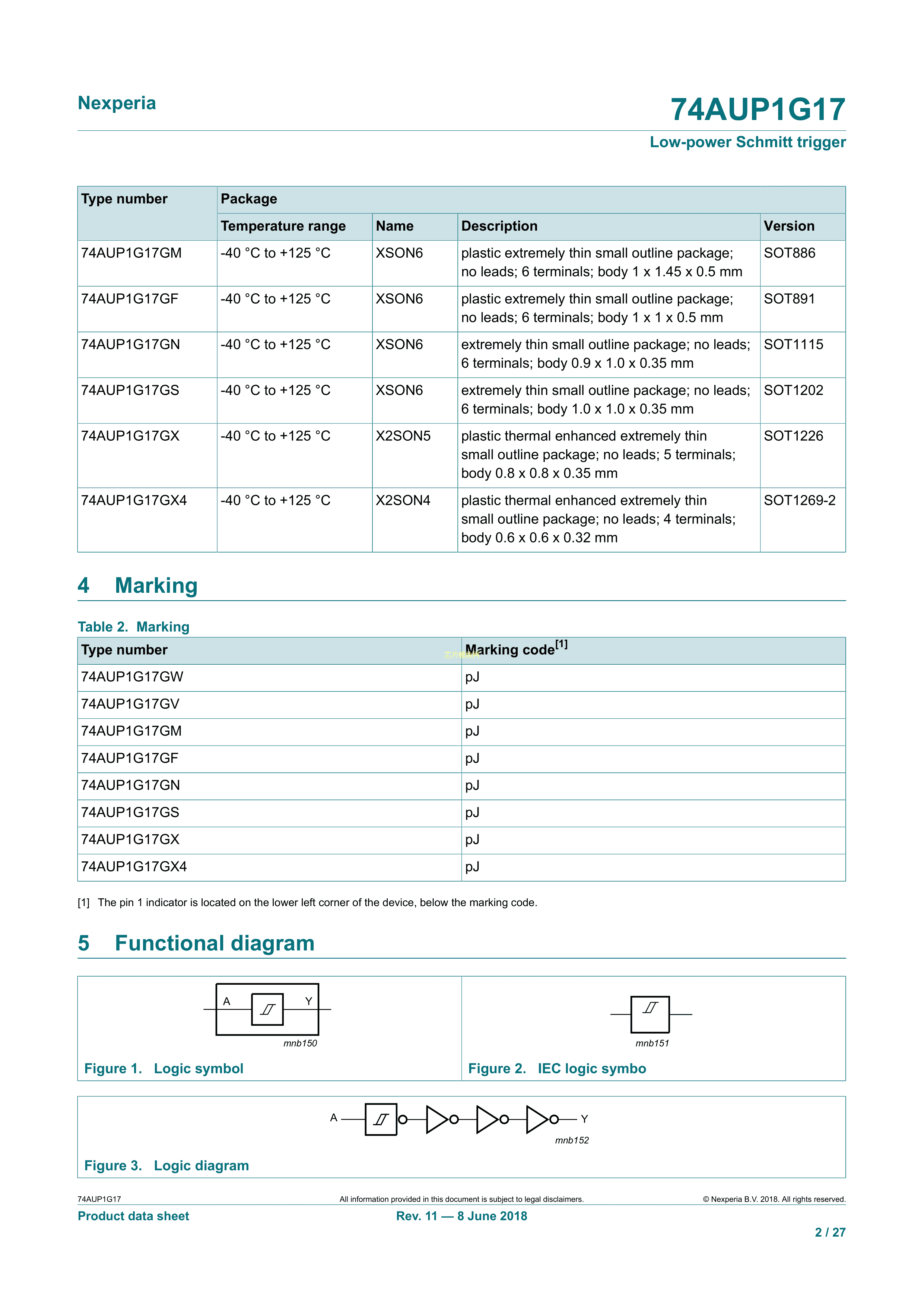 74AUP1G17GM132数据手册XSON-6封装Nexperia(安世)PDF规格书,中英文下载