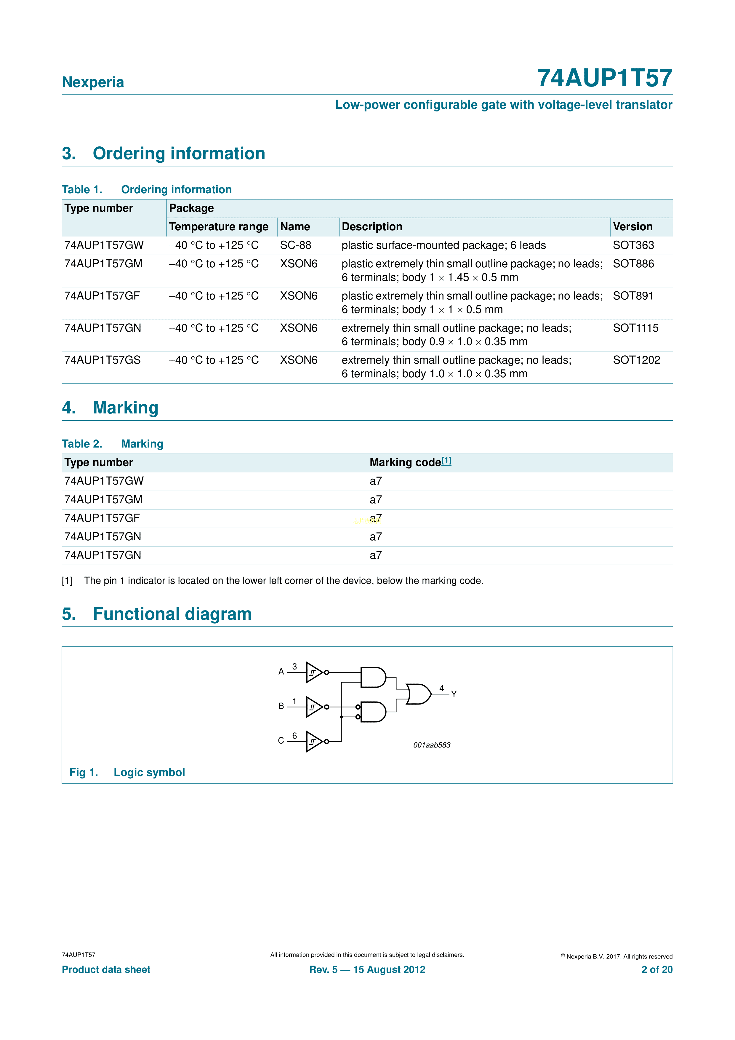 74AUP1T57GM132数据手册XSON-6封装Nexperia(安世)PDF规格书,中英文下载