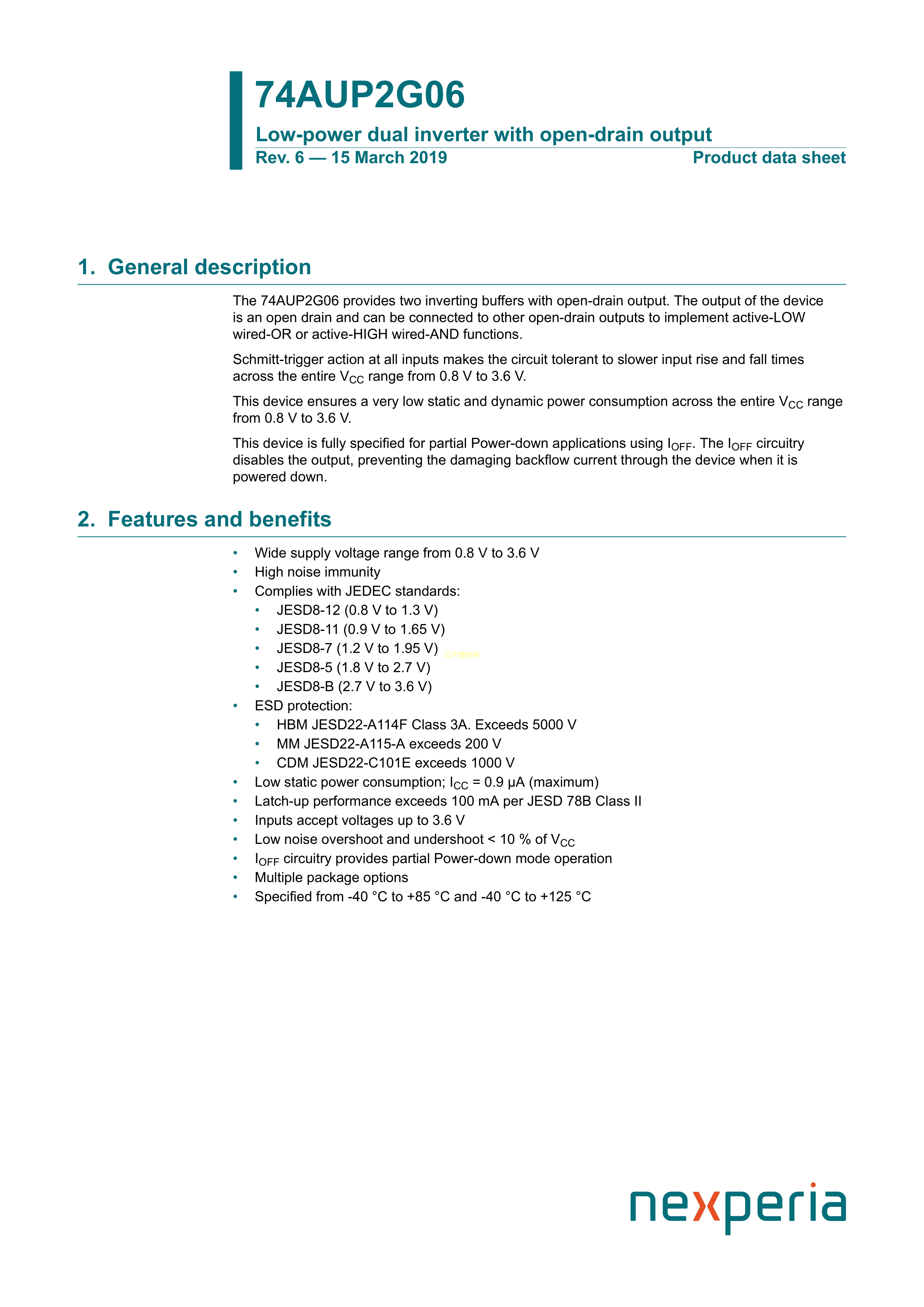 74AUP2G06GF132数据手册XSON-6封装Nexperia(安世)PDF规格书,中英文下载