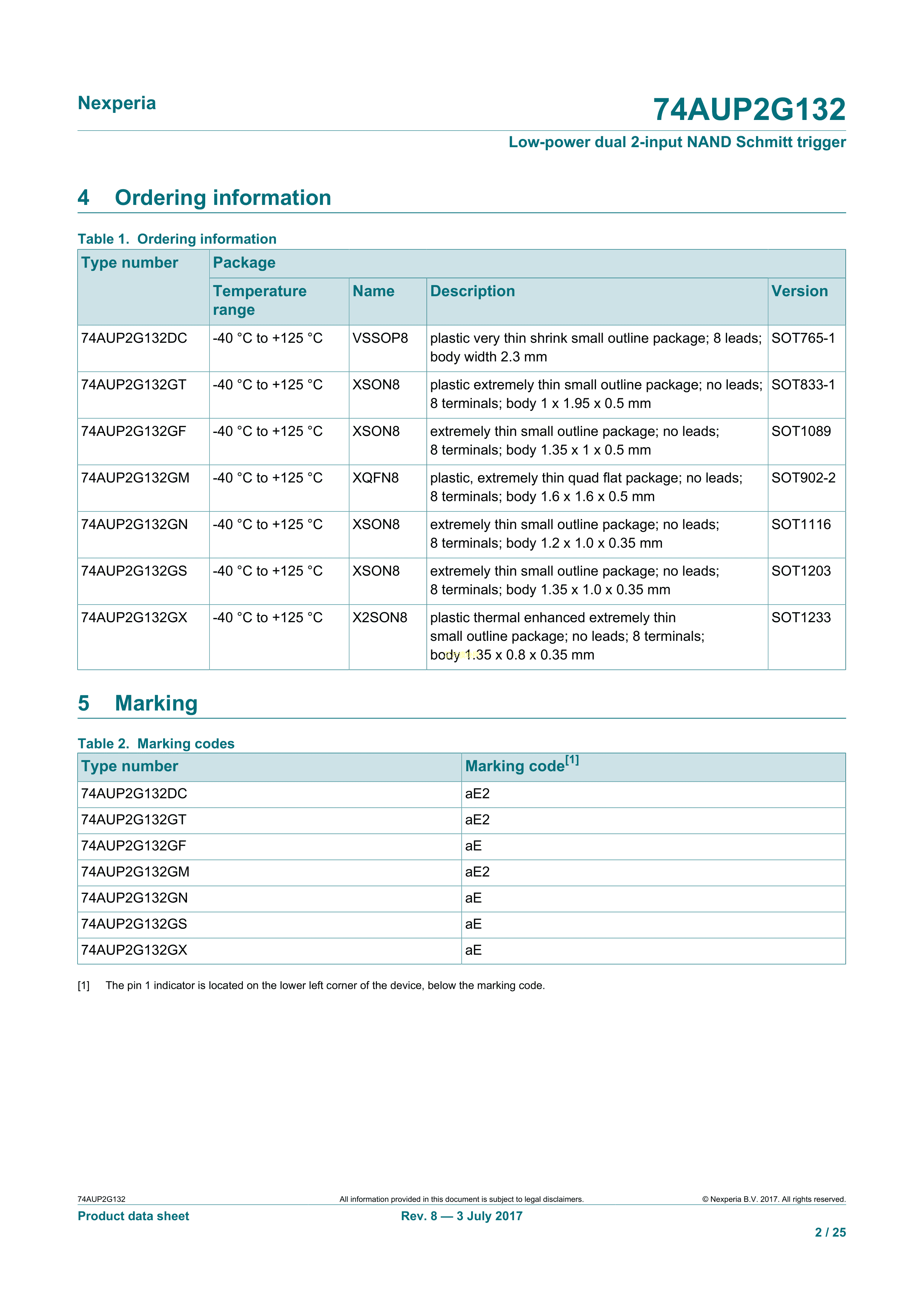 74AUP2G132GS115数据手册XSON-8封装Nexperia(安世)PDF规格书,中英文下