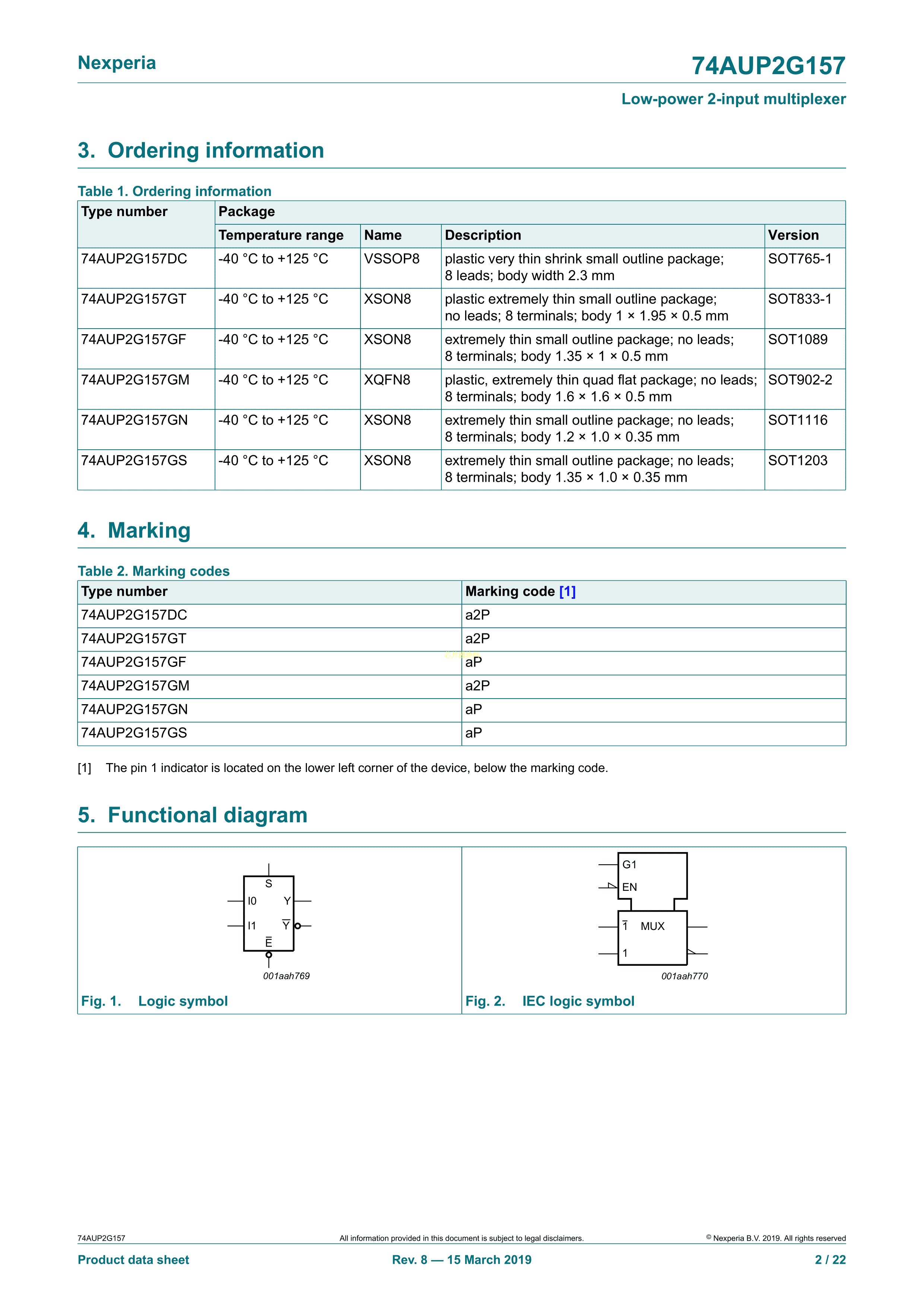 74AUP2G157GS115数据手册XSON-8封装Nexperia(安世)PDF规格书,中英文下