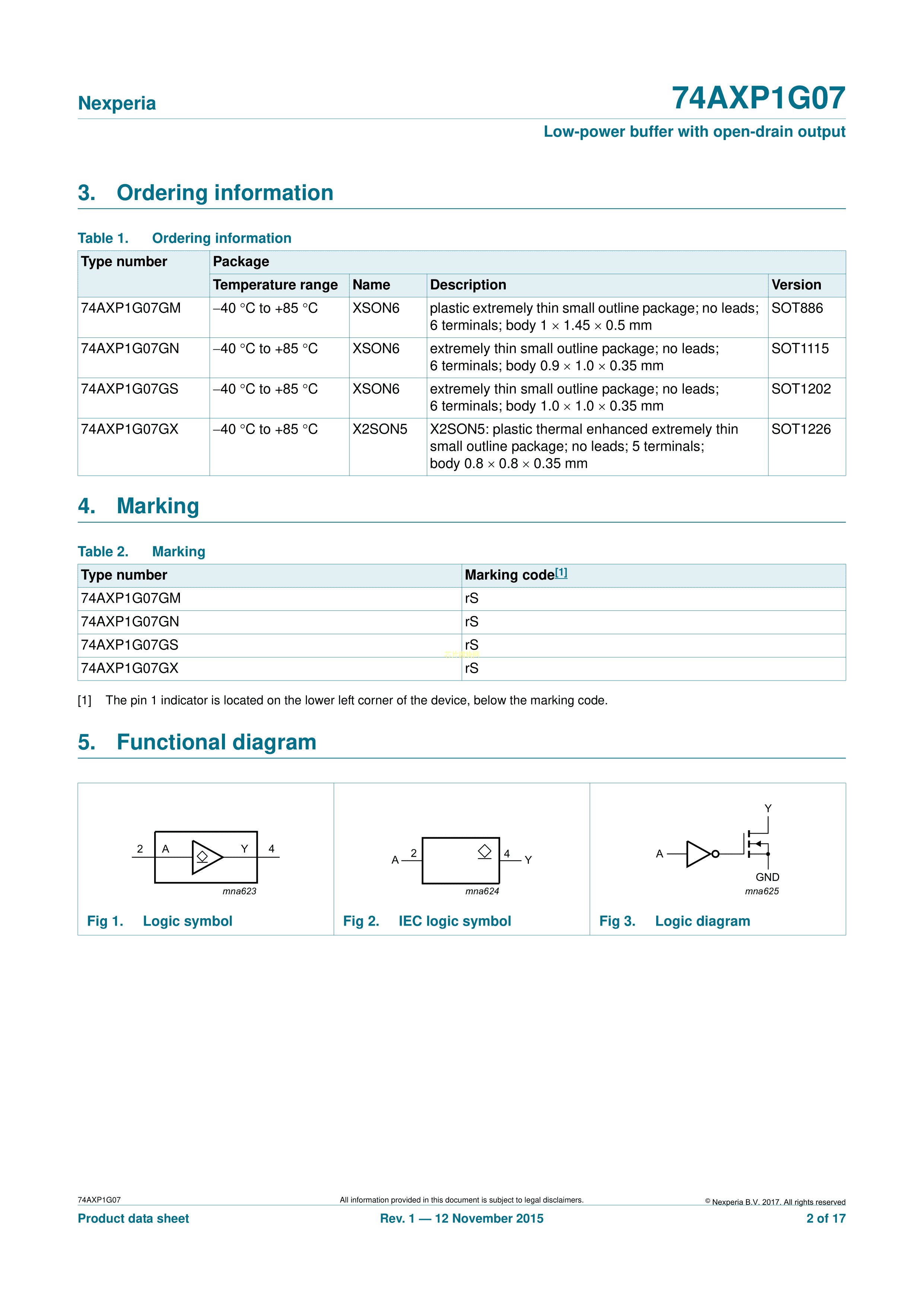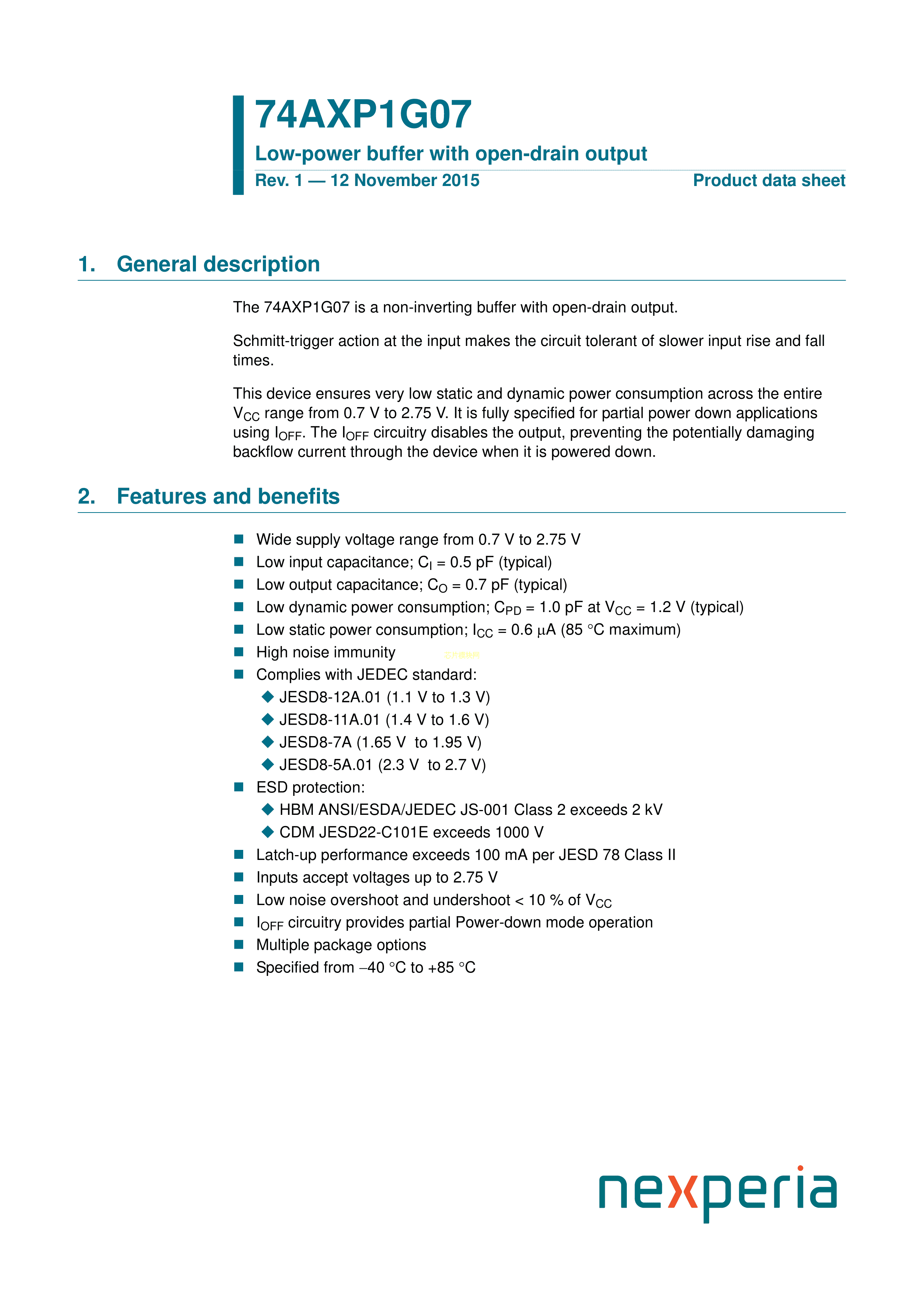 74AXP1G07GSH数据手册XSON-6封装Nexperia(安世)PDF规格书,中英文下载