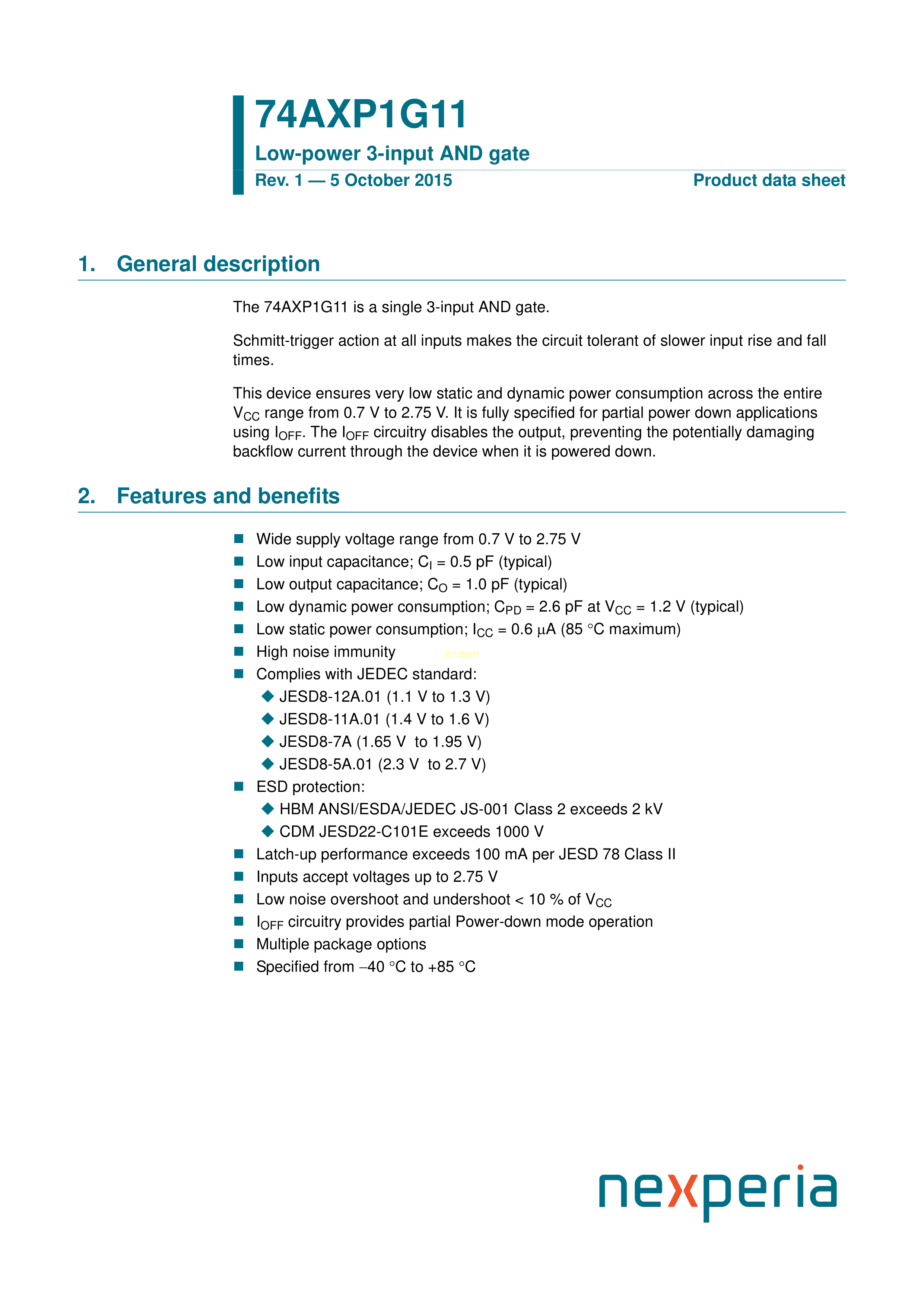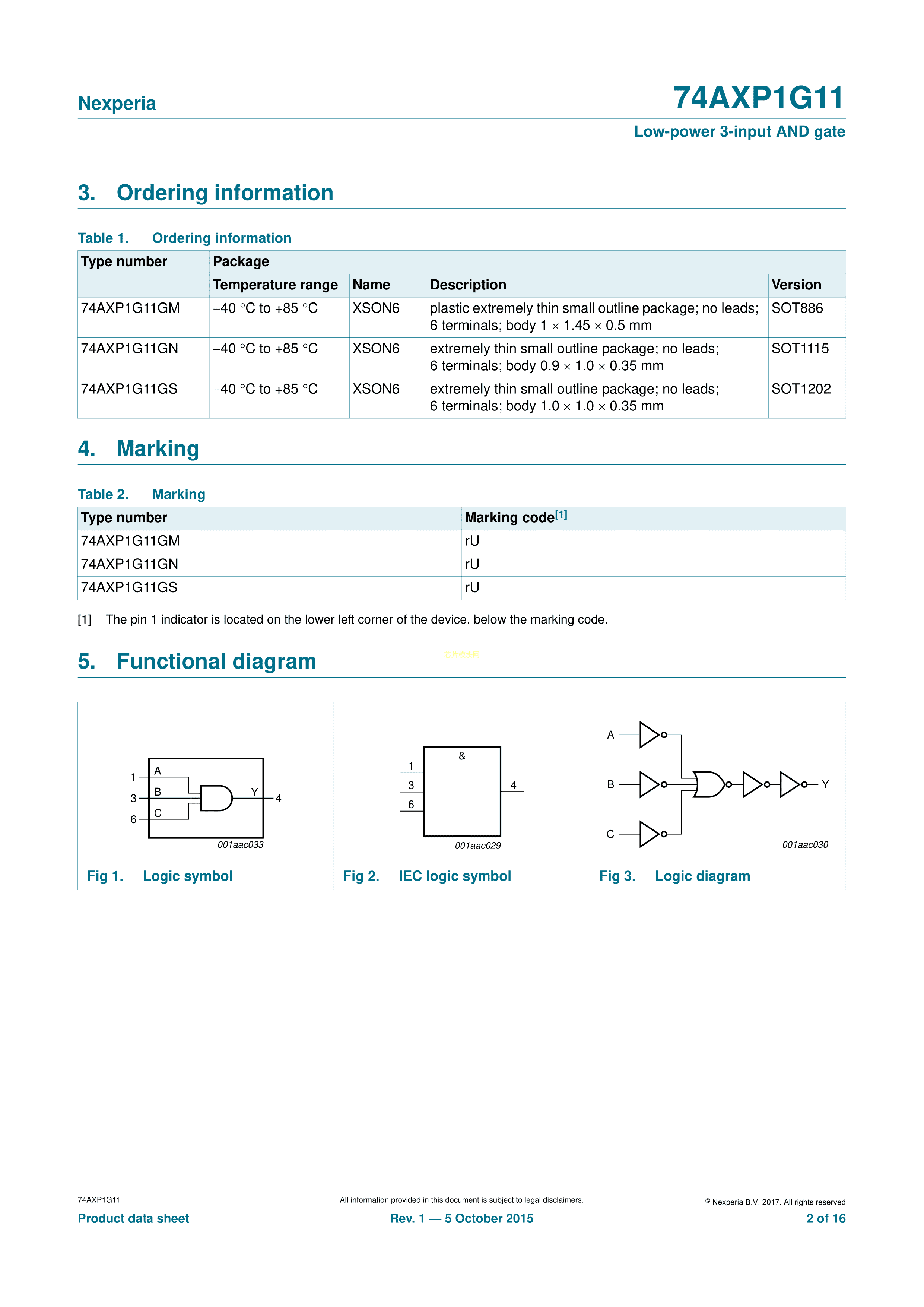 74AXP1G11GSH数据手册XSON-6封装Nexperia(安世)PDF规格书,中英文下载