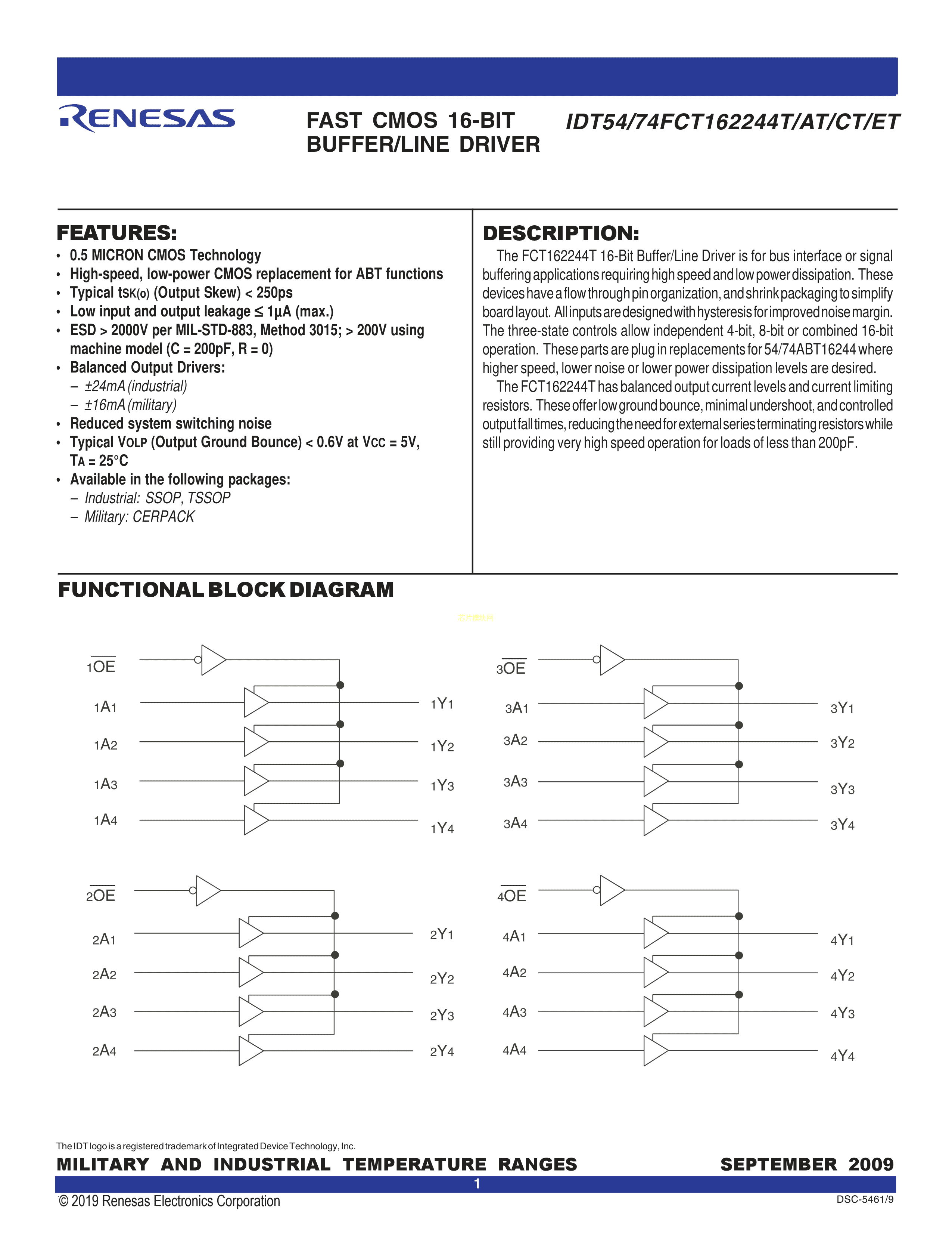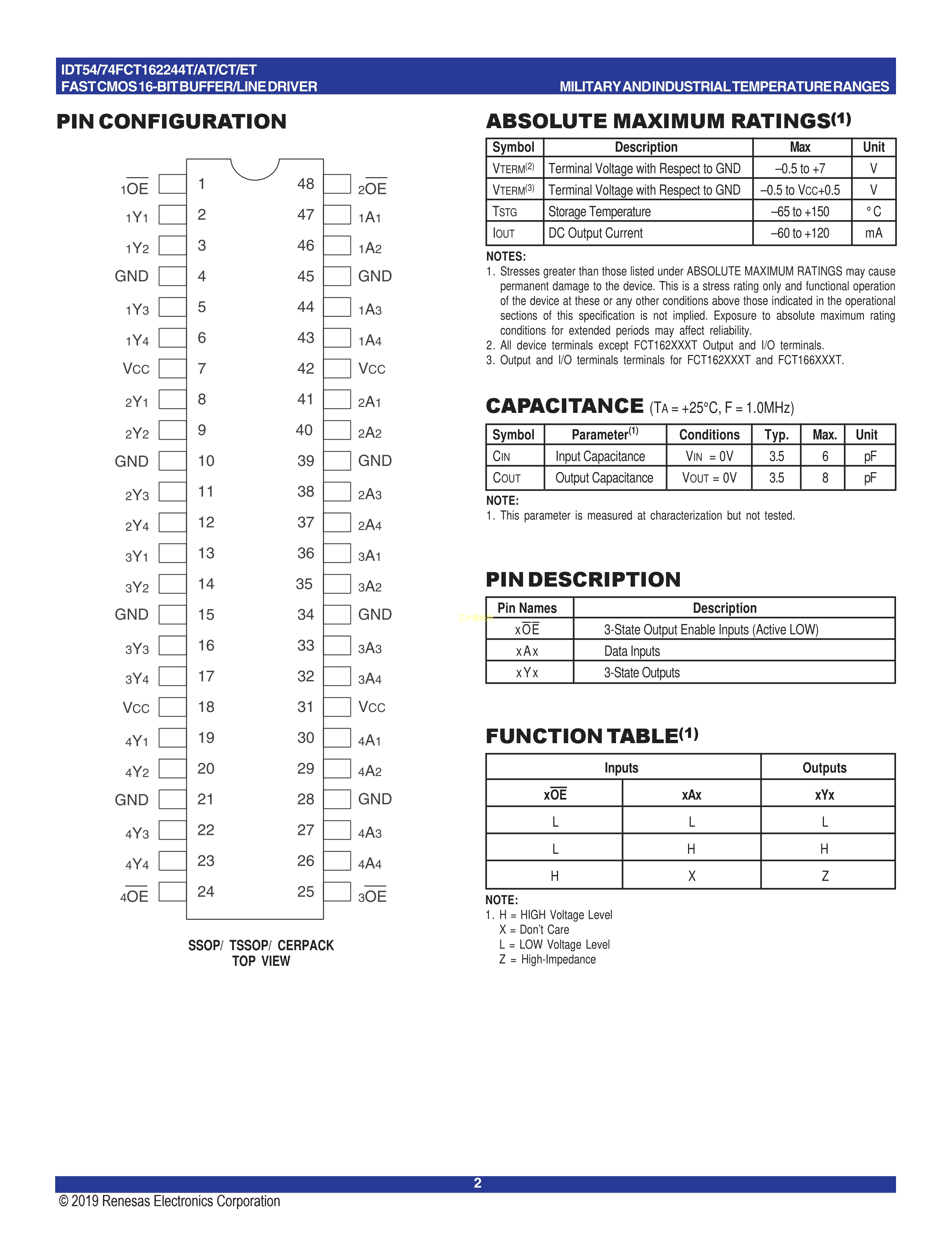 74FCT162244CTPAG数据手册TSSOP-48封装RENESAS(瑞萨)-IDTPDF规格