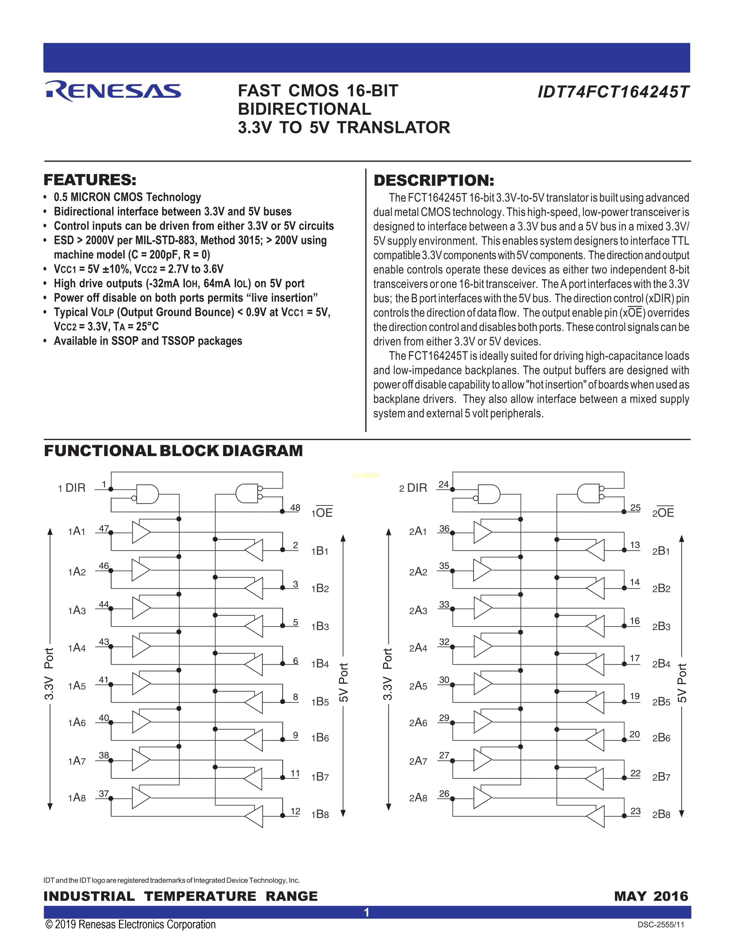 74FCT164245TPAG数据手册TSSOP-48封装RENESAS(瑞萨)-IDTPDF规格书