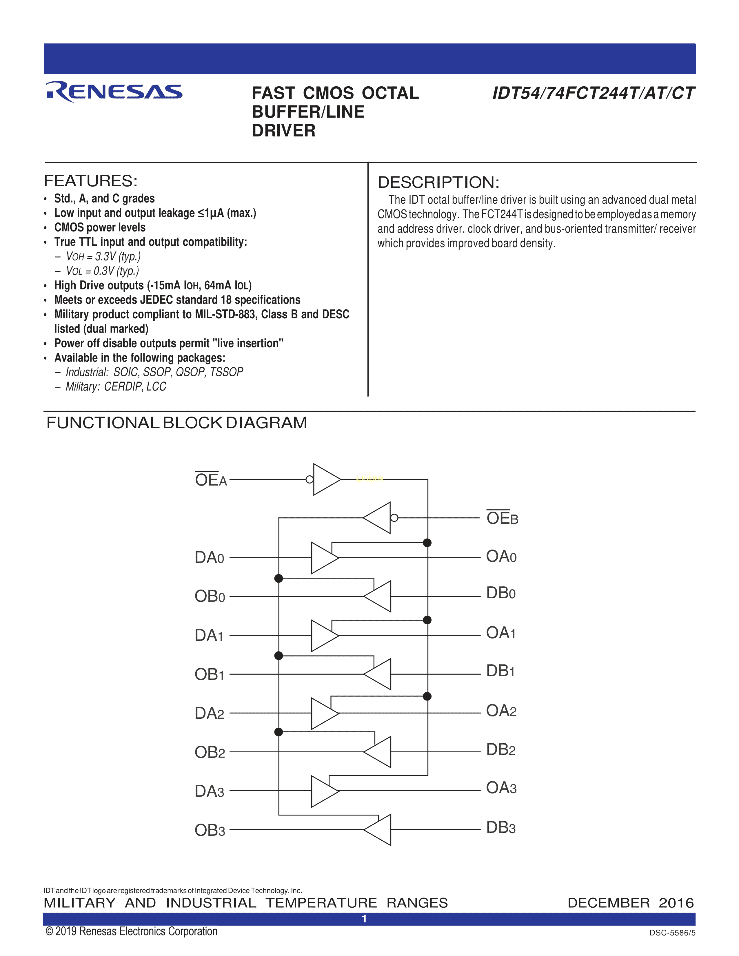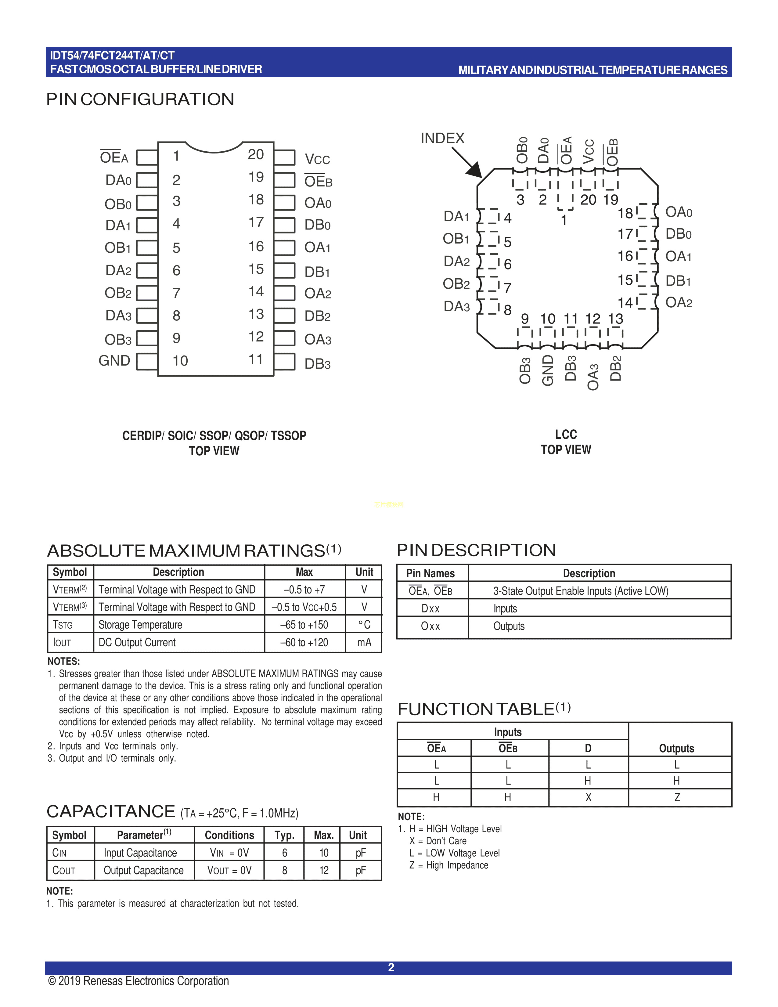 74FCT244ATPYG数据手册SSOP-20封装RENESAS(瑞萨)-IDTPDF规格书,中英