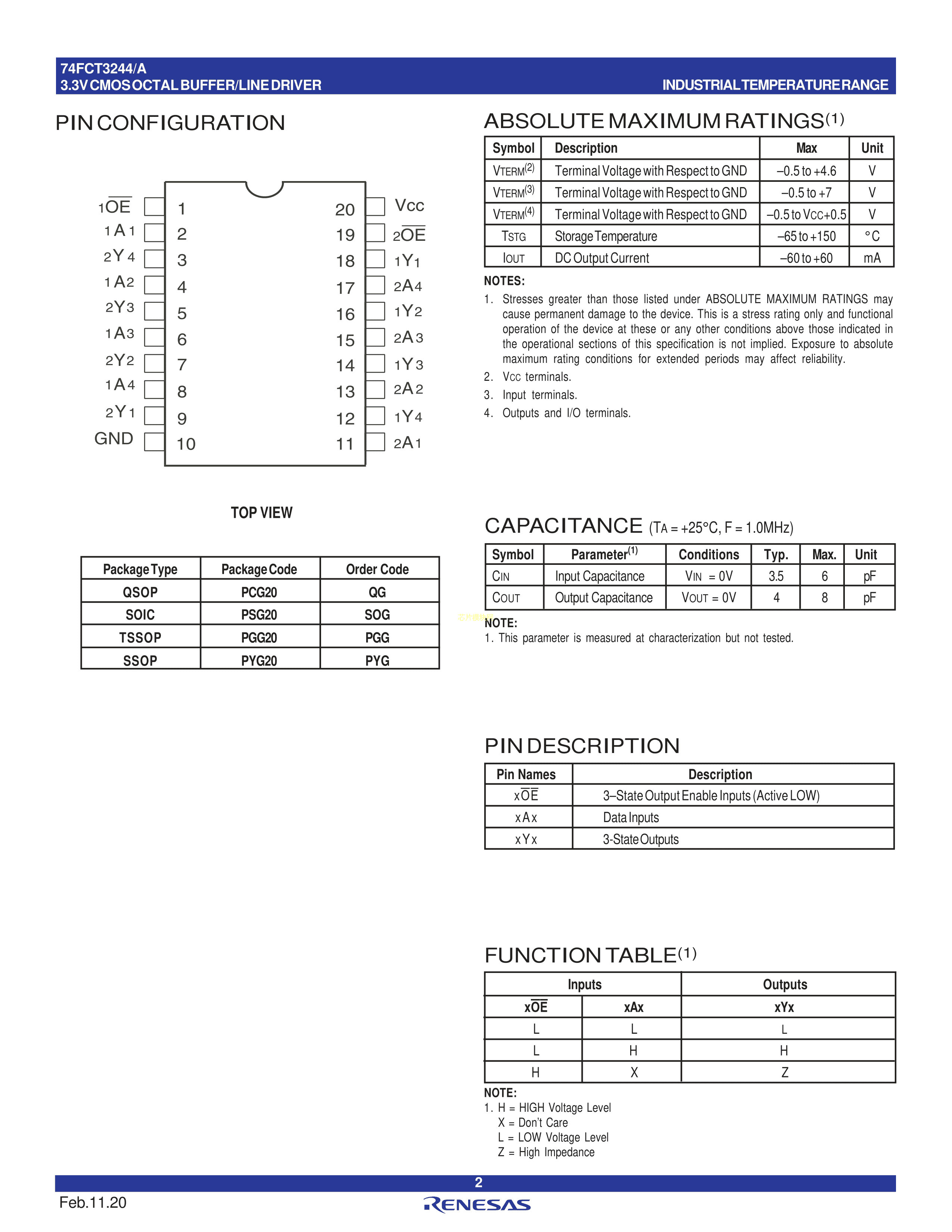 74FCT3244APYG数据手册SSOP-20封装RENESAS(瑞萨)-IDTPDF规格书,中英