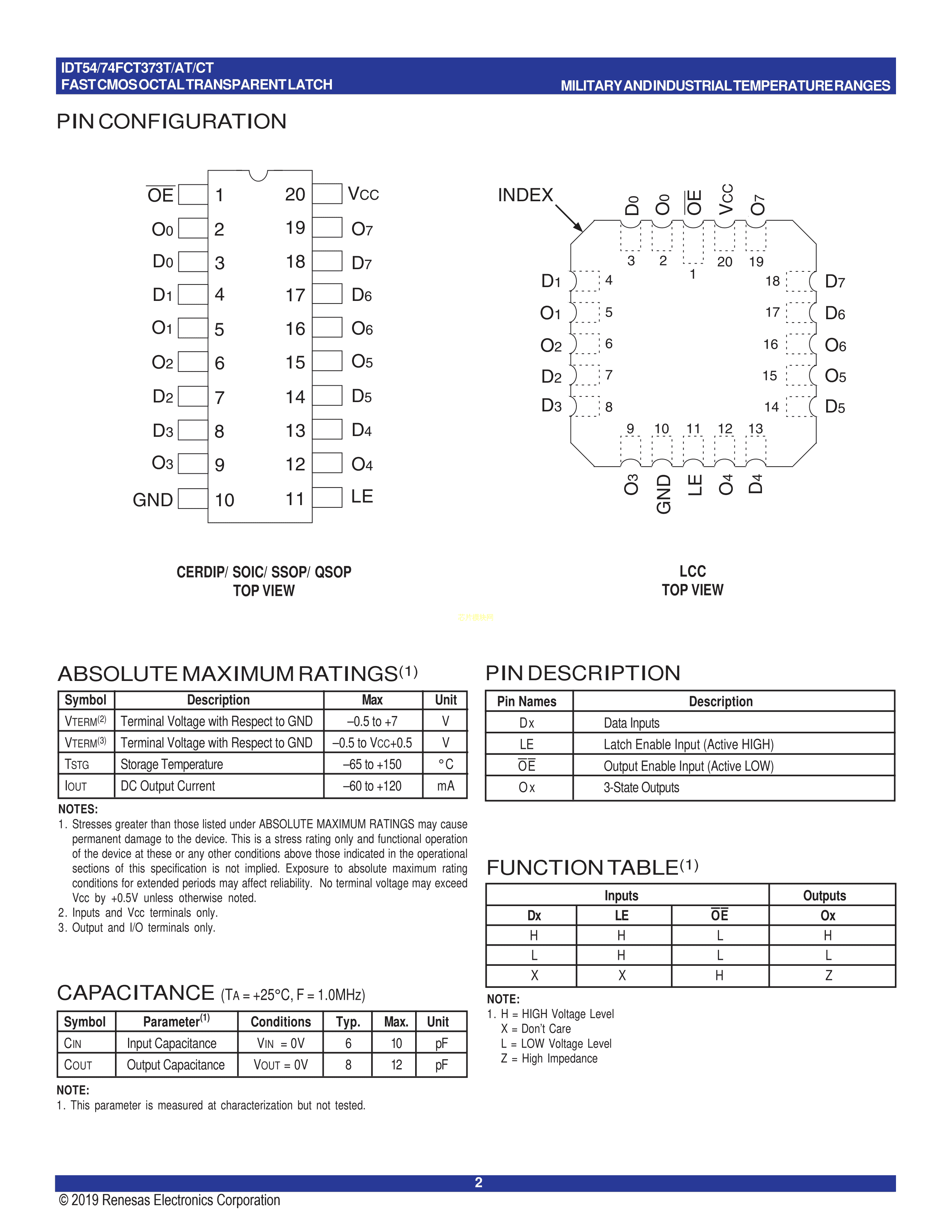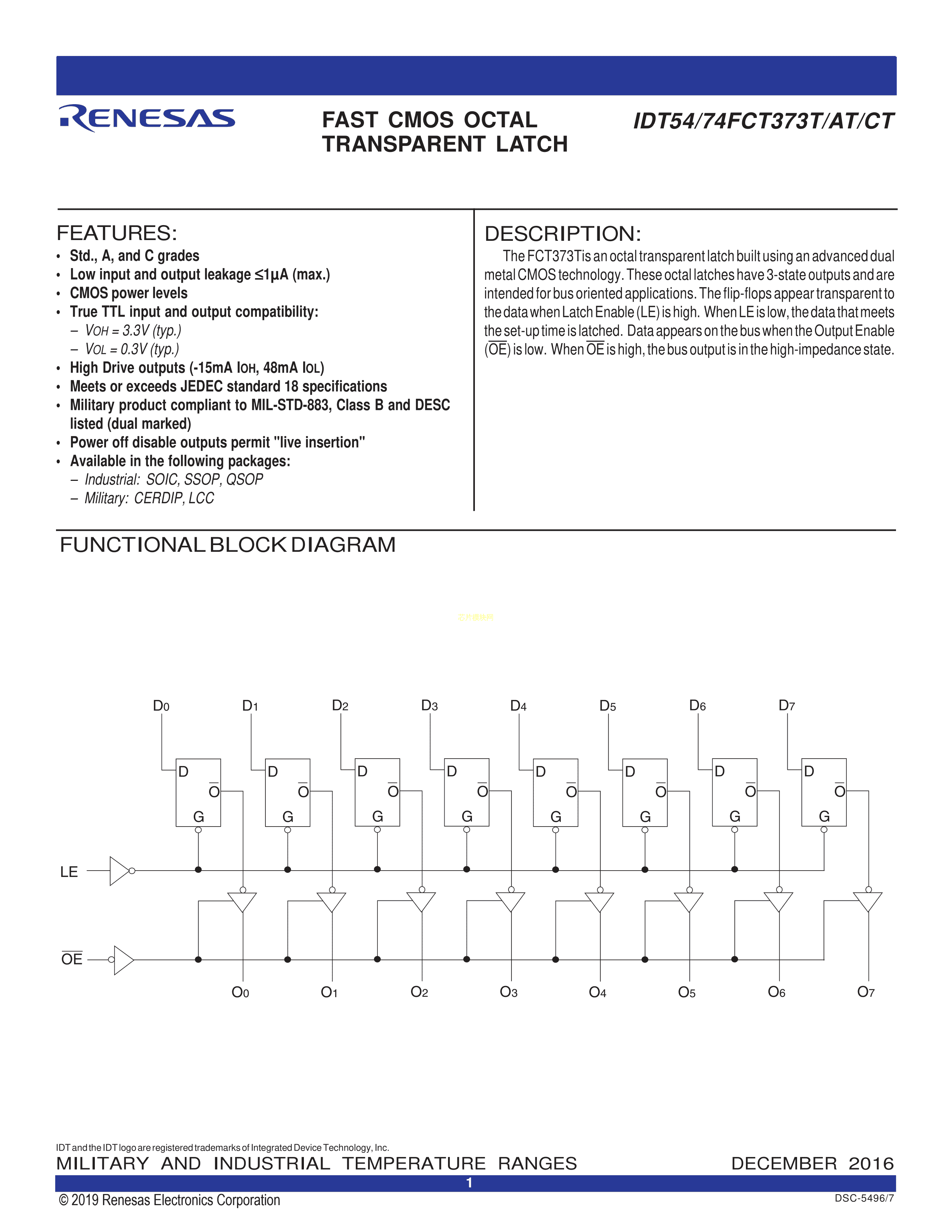 74FCT373CTSOG数据手册SOIC-20封装RENESAS(瑞萨)-IDTPDF规格书,中英