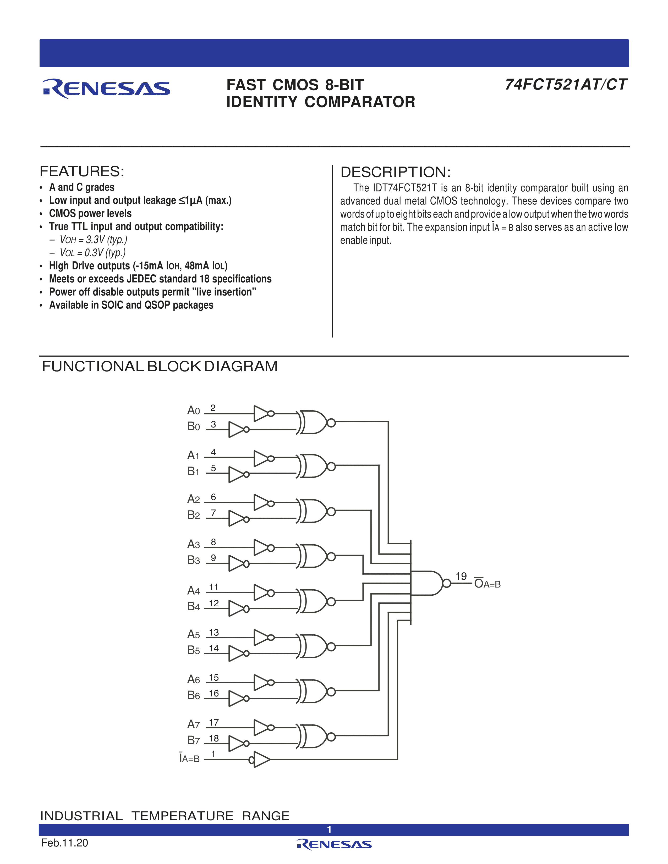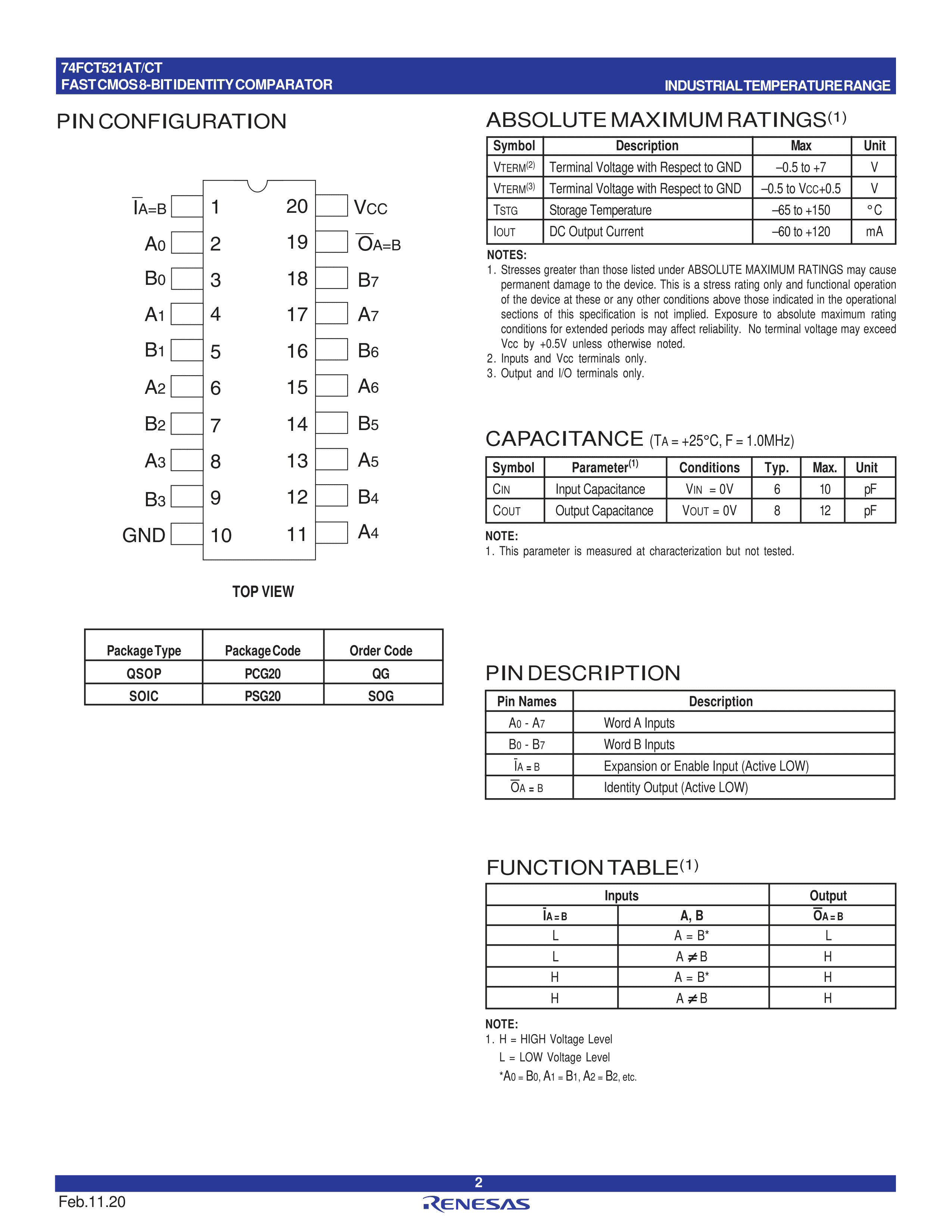 74FCT521CTQG8数据手册QSOP-20封装RENESAS(瑞萨)-IDTPDF规格书,中英