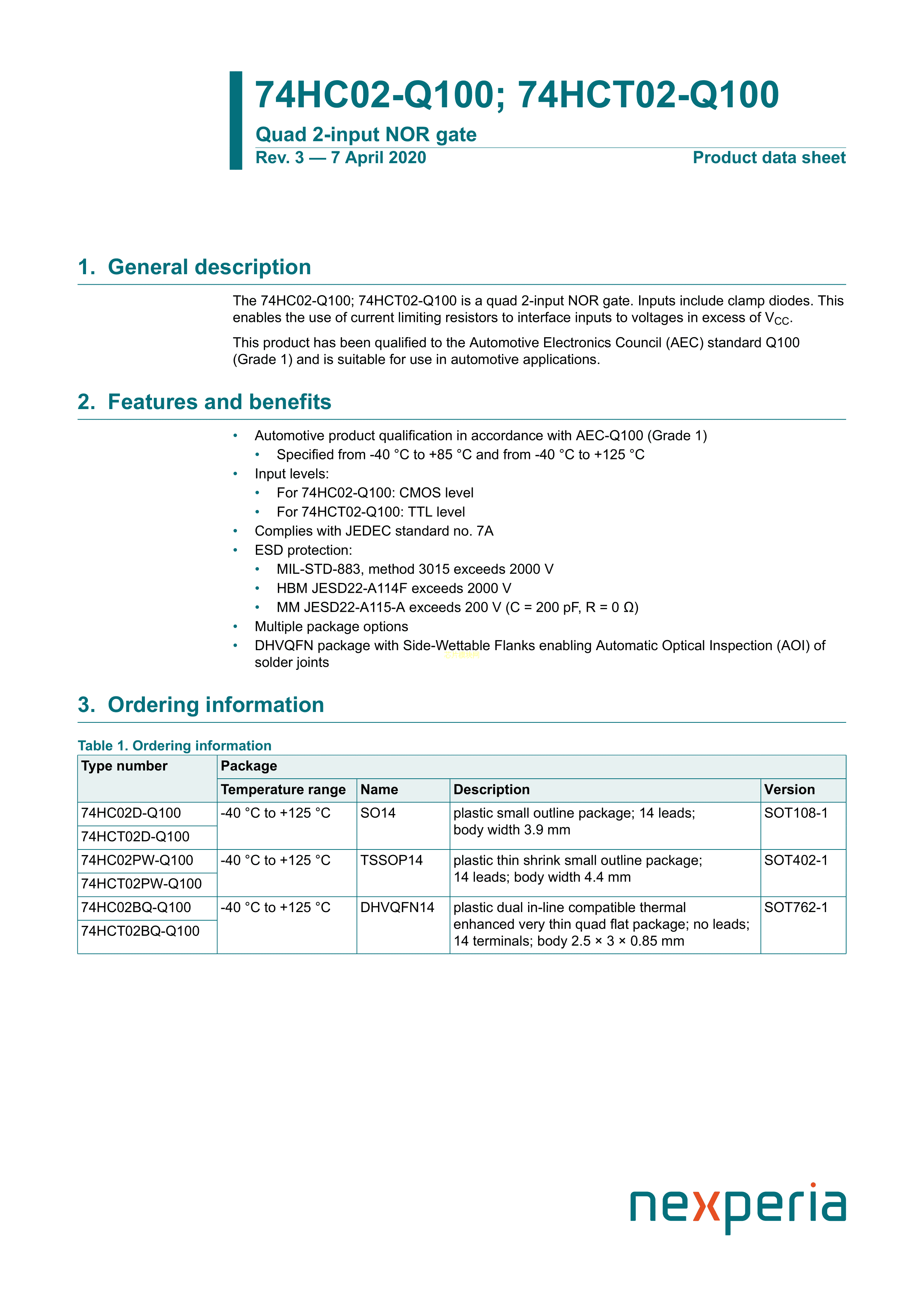 74HC02BQ-Q100115数据手册DHVQFN-14封装Nexperia(安世)PDF规格书,