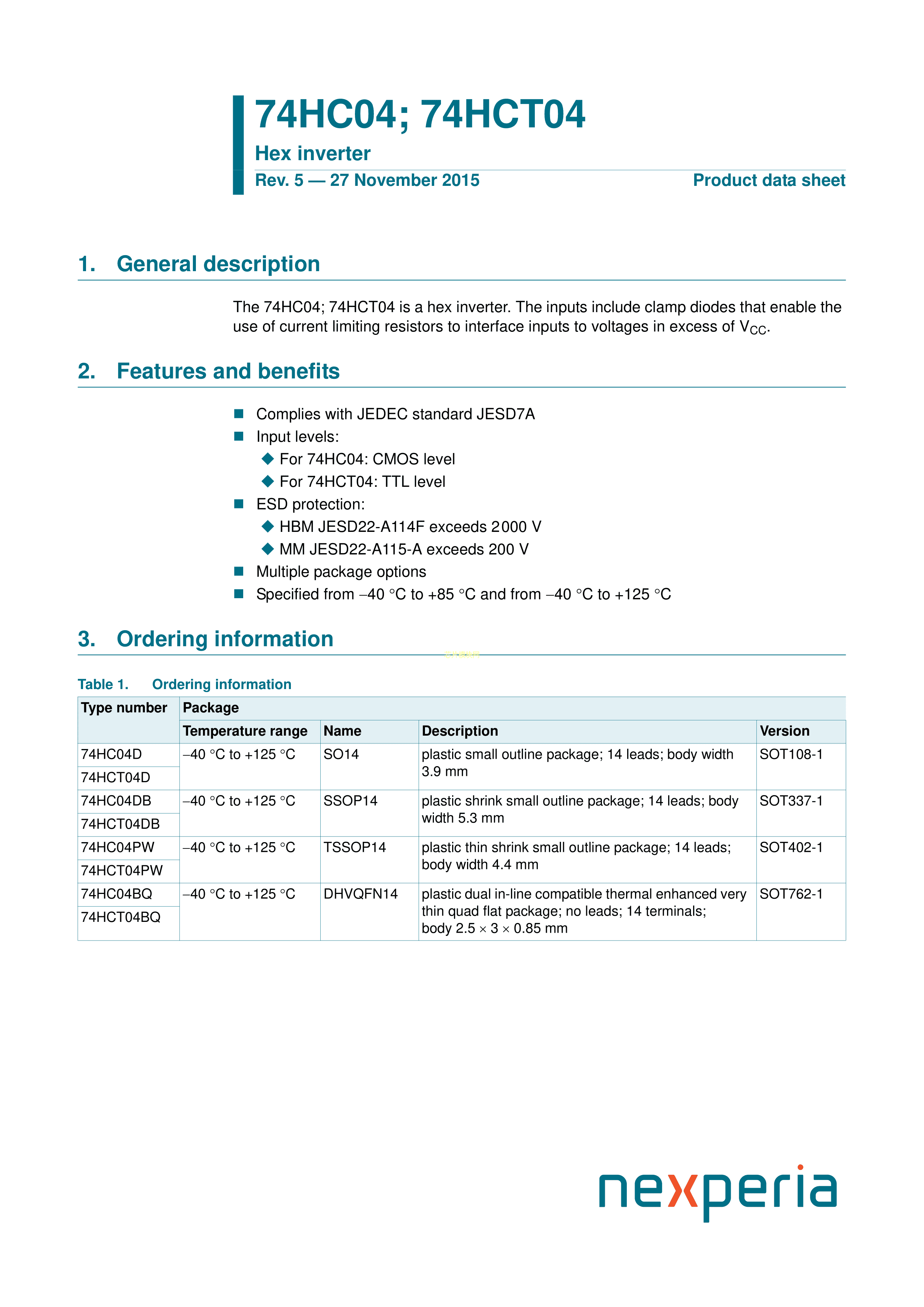 74HC04PW118数据手册TSSOP-14封装Nexperia(安世)PDF规格书,中英文下载
