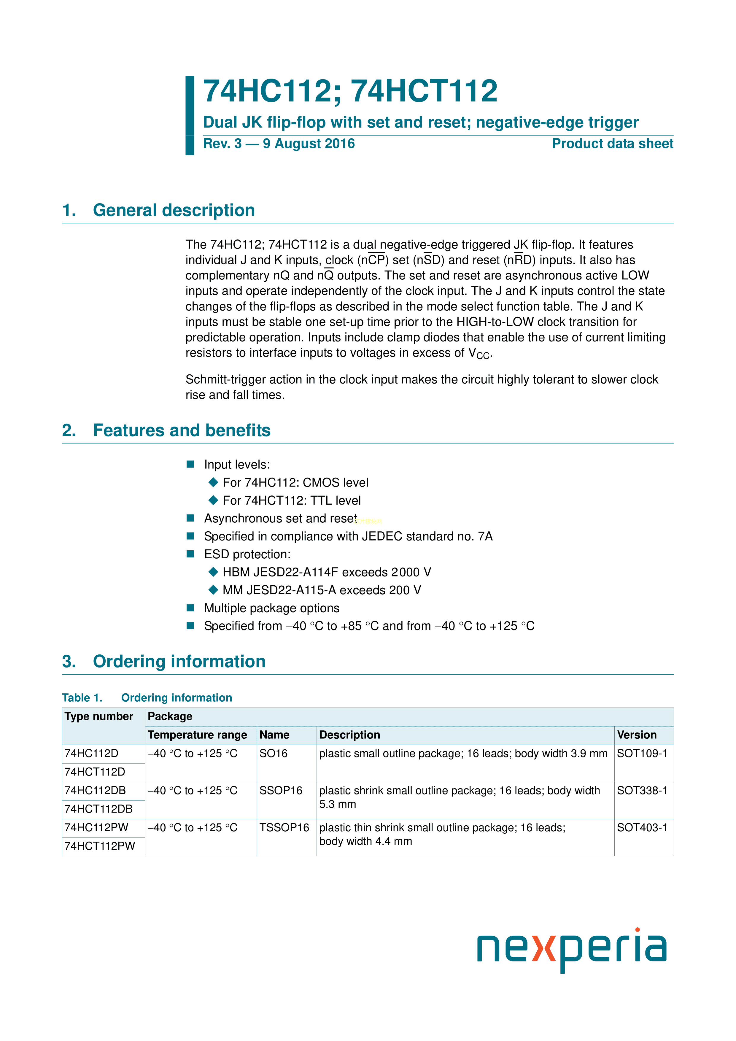 74HC112DB112数据手册SSOP-16封装Nexperia(安世)PDF规格书,中英文下载