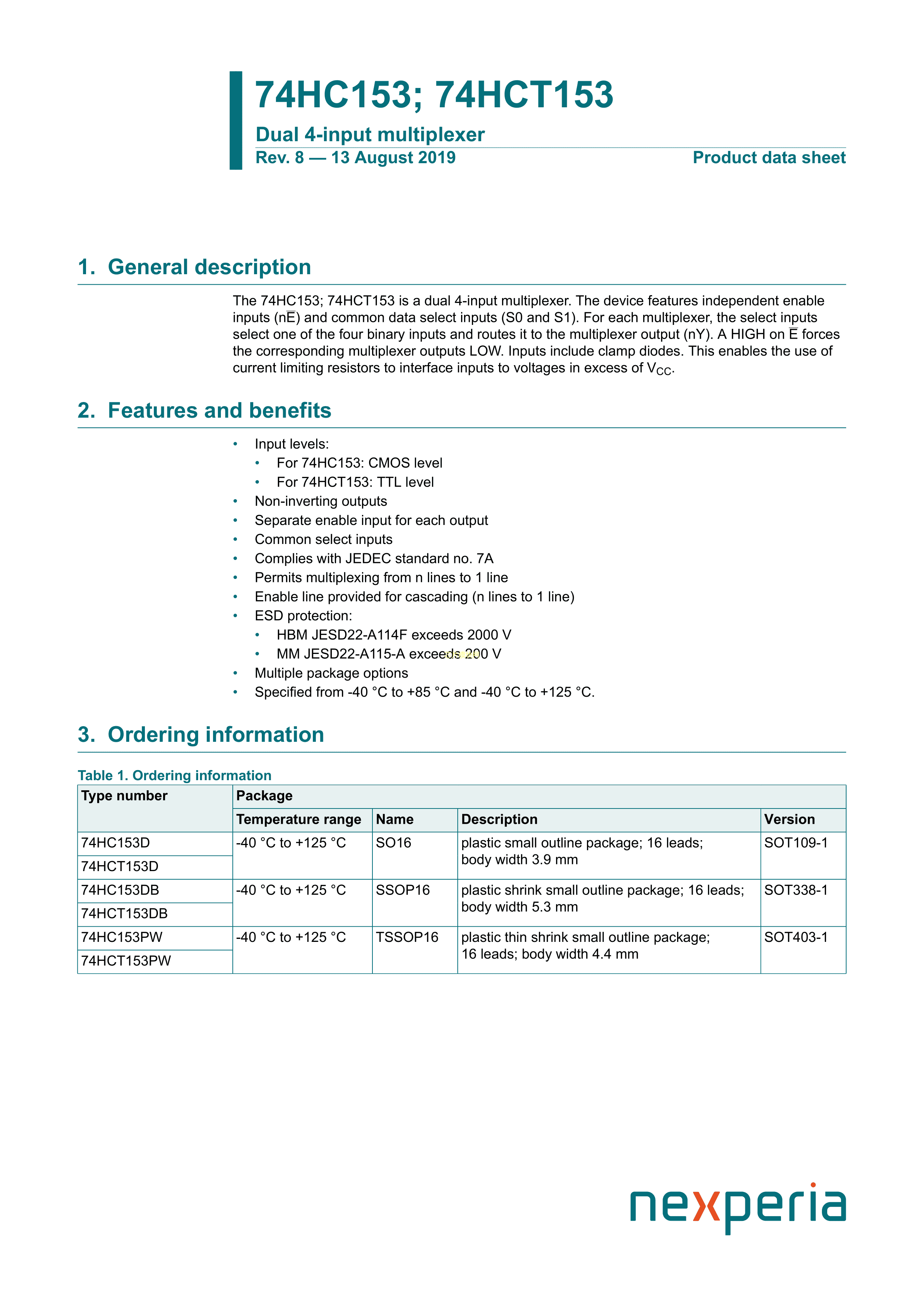 74HC153DB112数据手册SSOP-16封装Nexperia(安世)PDF规格书,中英文下载