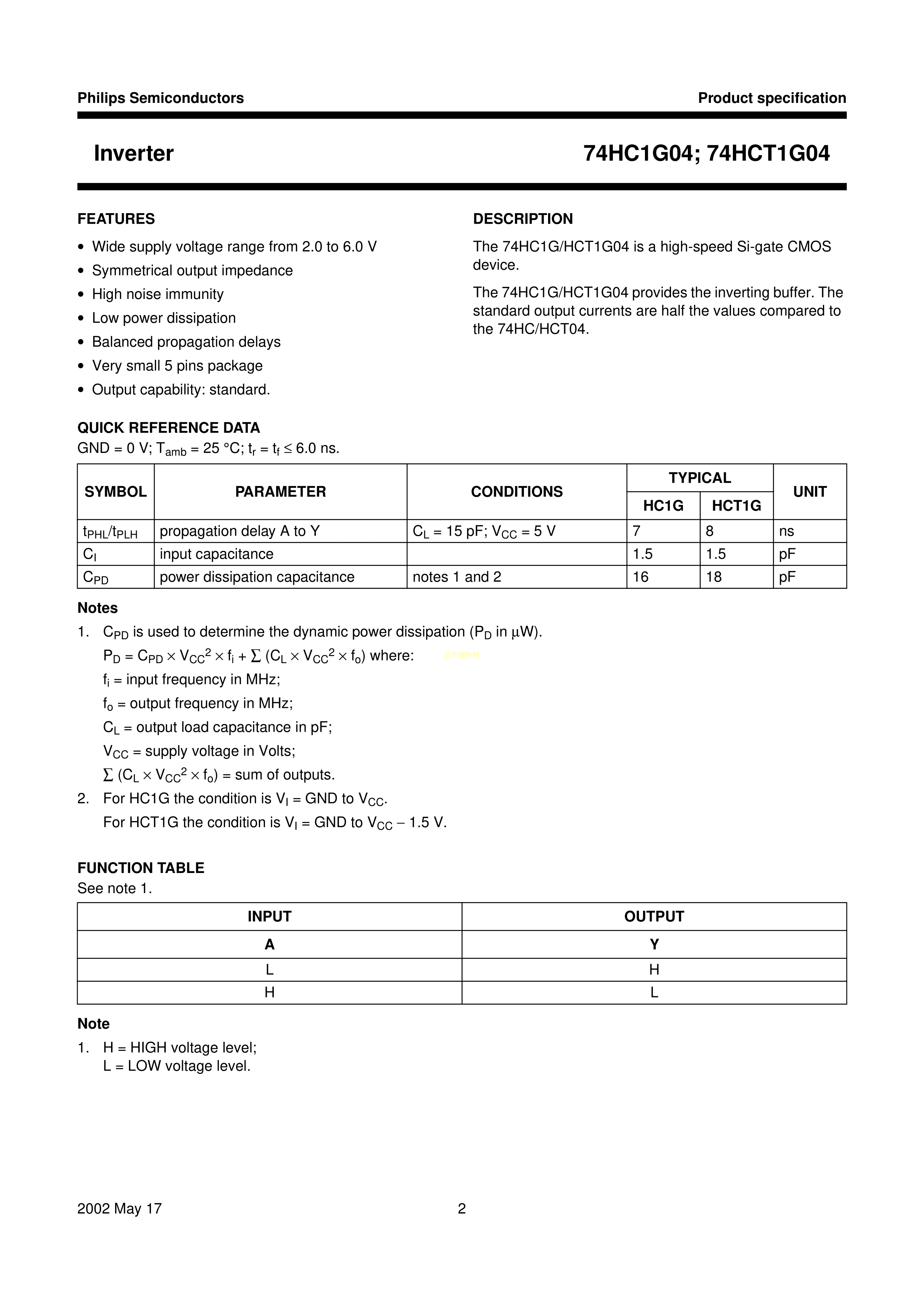 74HC1G04GW125数据手册SOT-353封装Nexperia(安世)PDF规格书,中英文下载