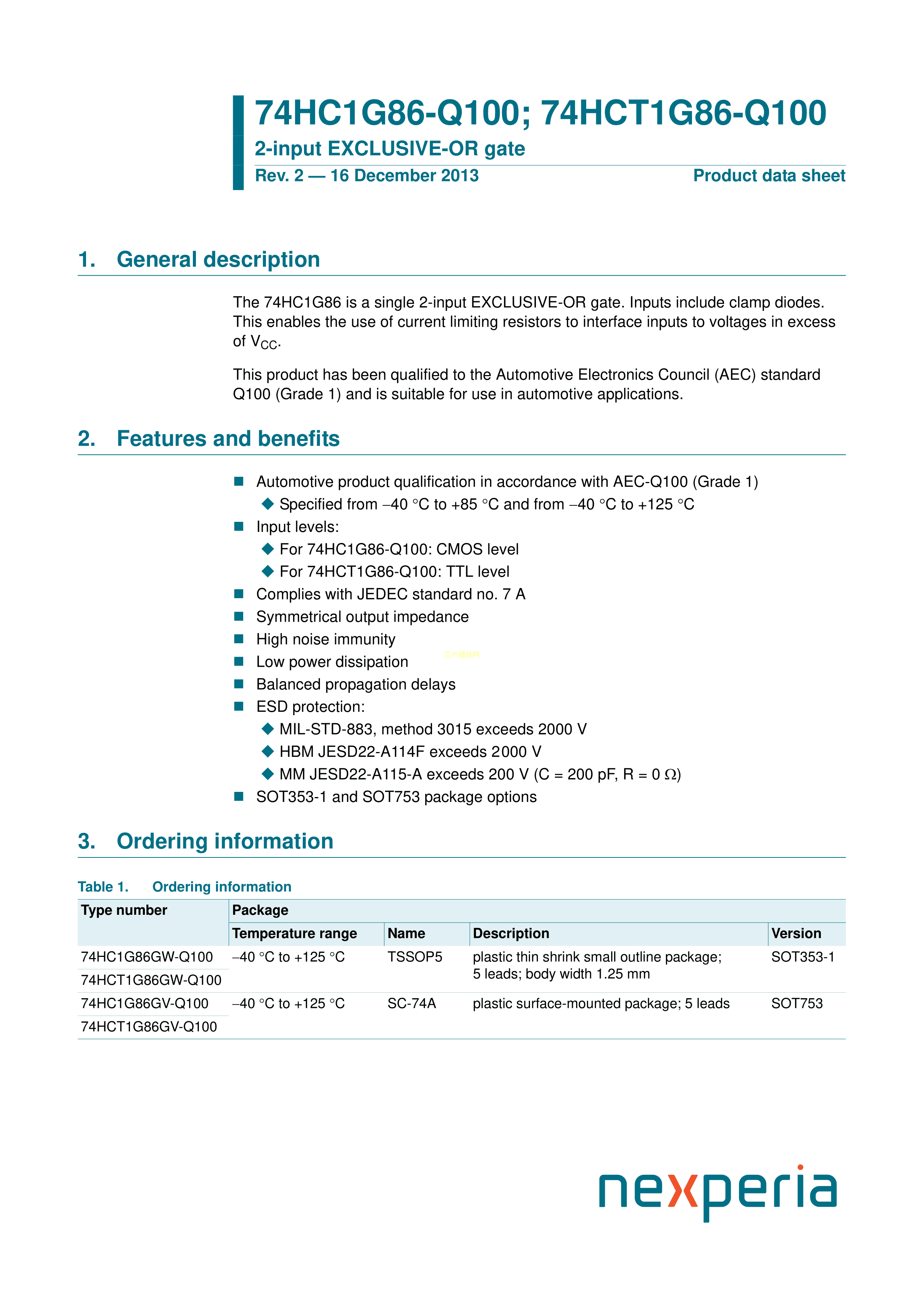 74HC1G86GV-Q100H数据手册SC-74A封装Nexperia(安世)PDF规格书,中英文
