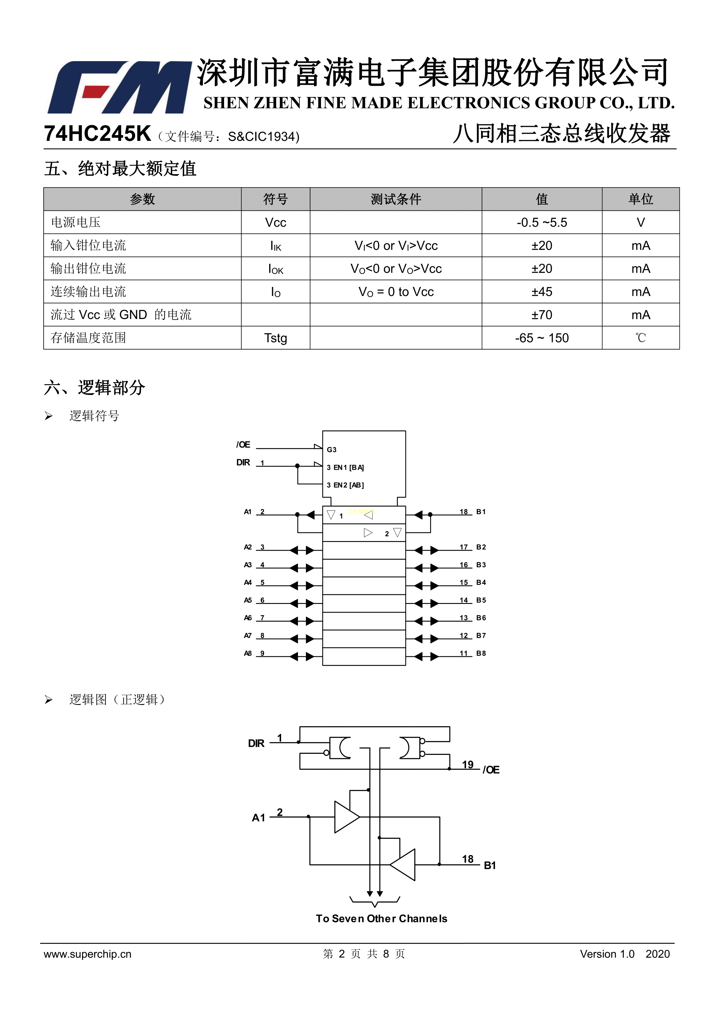 74HC245K数据手册TSSOP-20封装FM(富满)PDF规格书,中英文下载