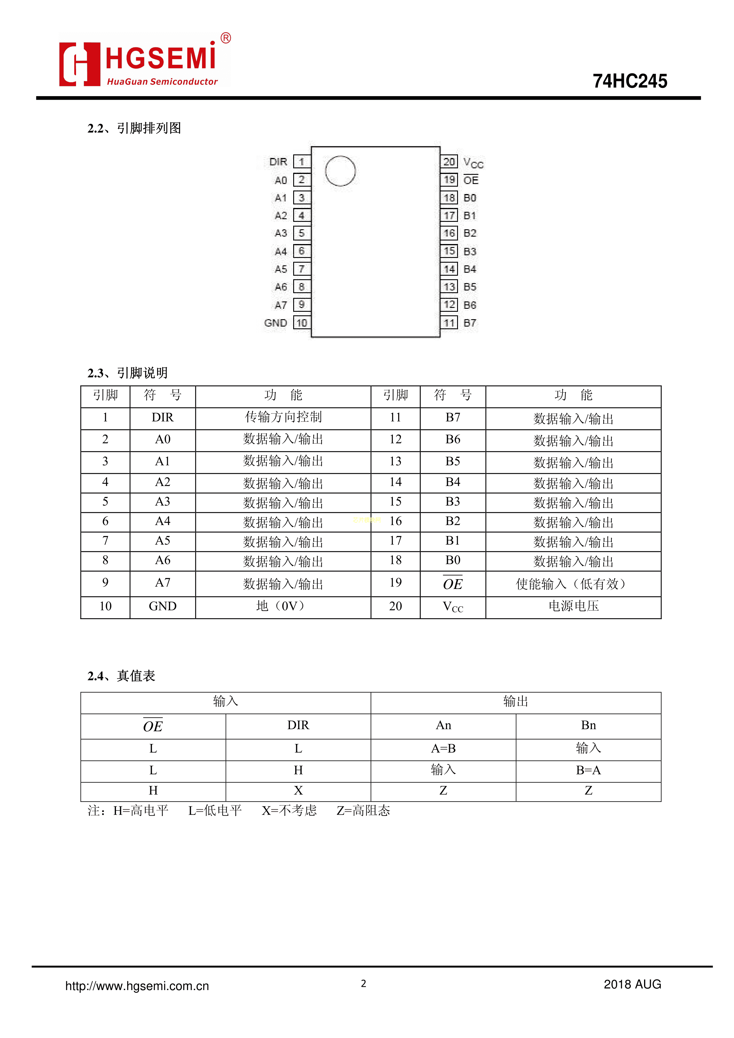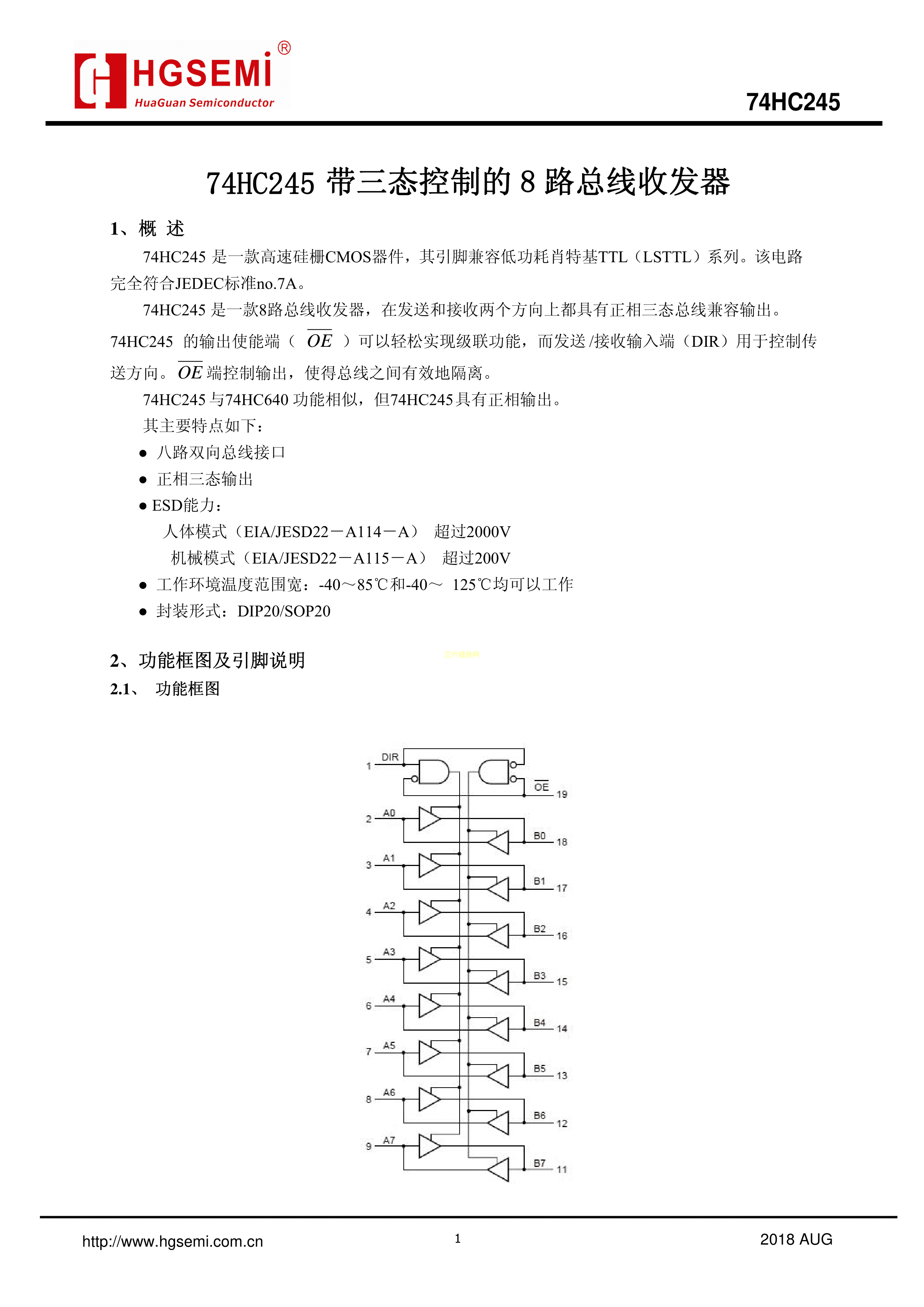 74HC245M-TR数据手册SOP-20封装HGSEMI(华冠)PDF规格书,中英文下载