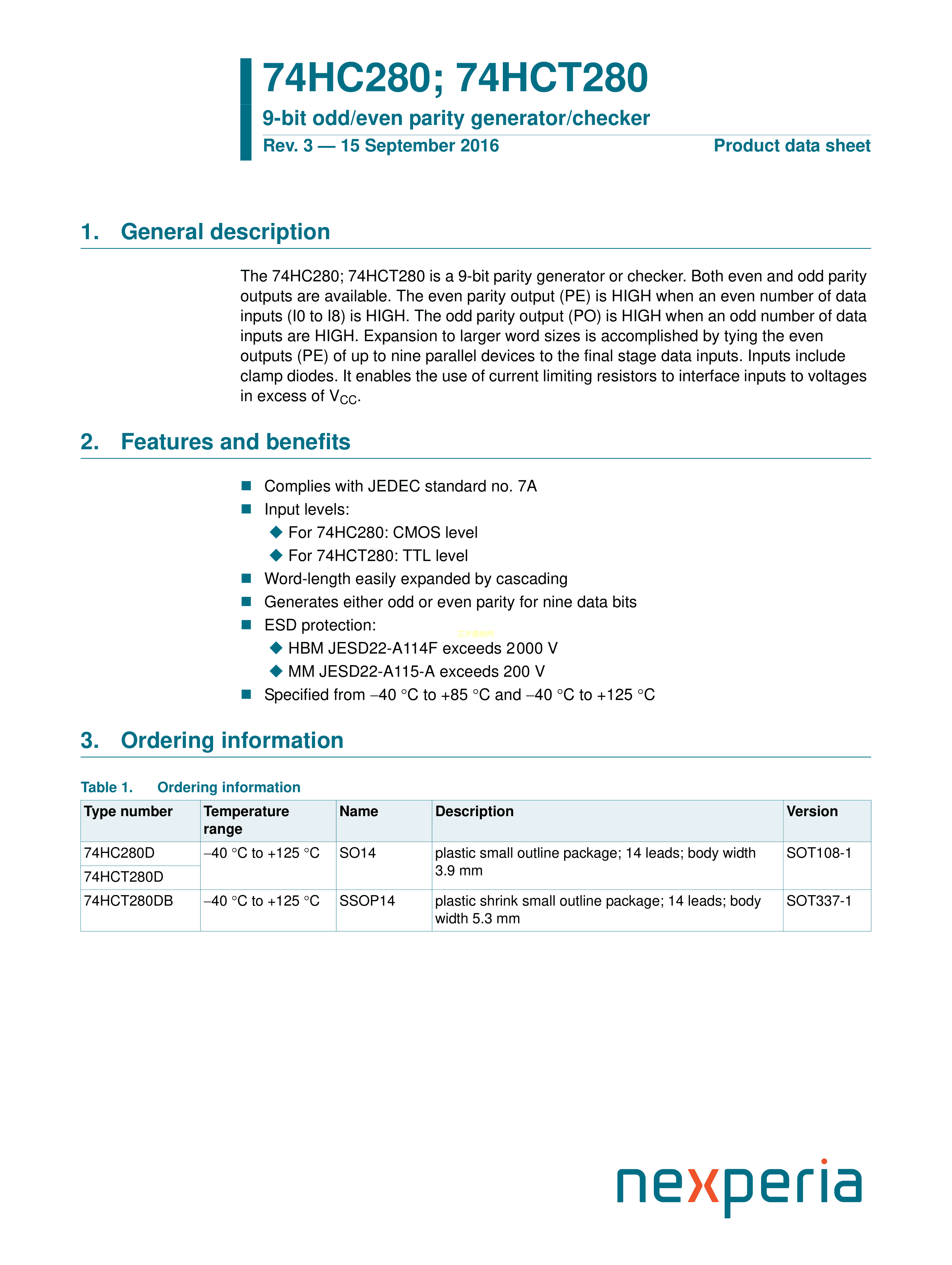 74HC280D652数据手册SO-14封装Nexperia(安世)PDF规格书,中英文下载