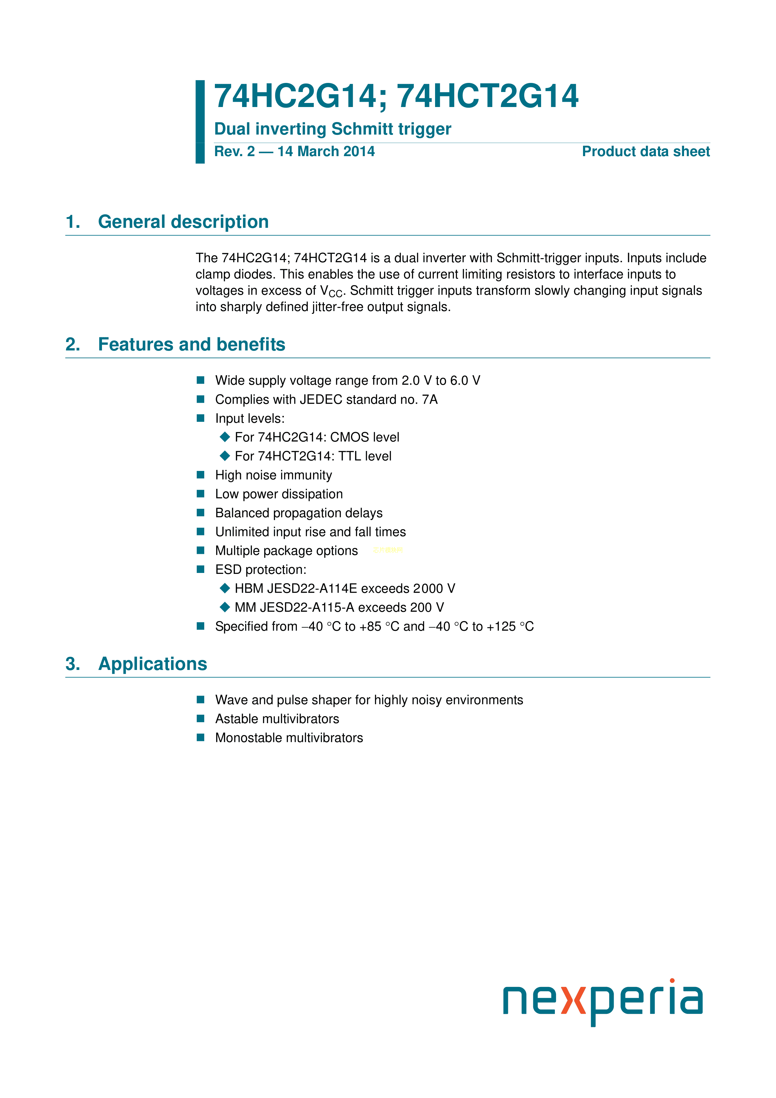 74HC2G14GV125数据手册SC-74封装Nexperia(安世)PDF规格书,中英文下载