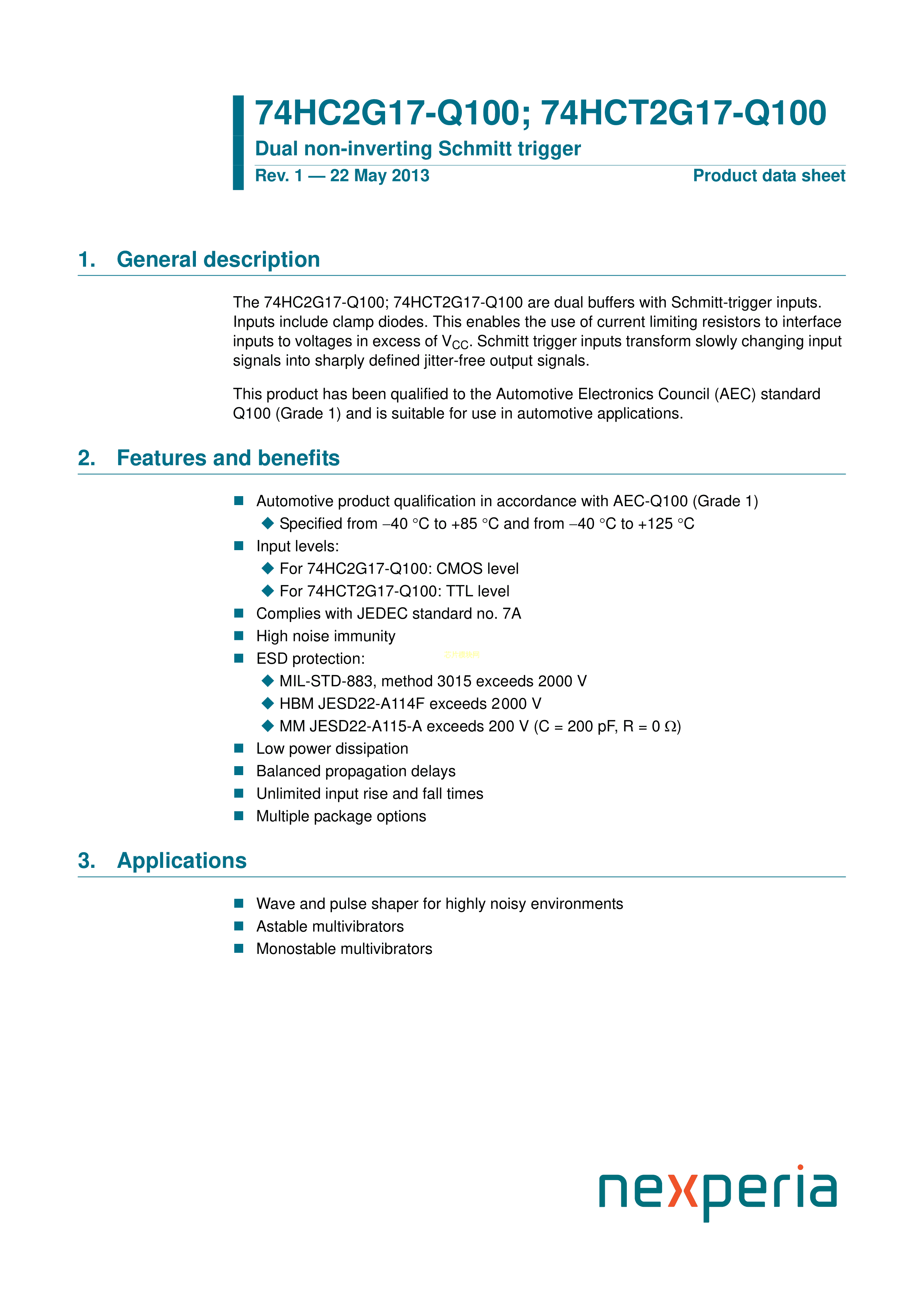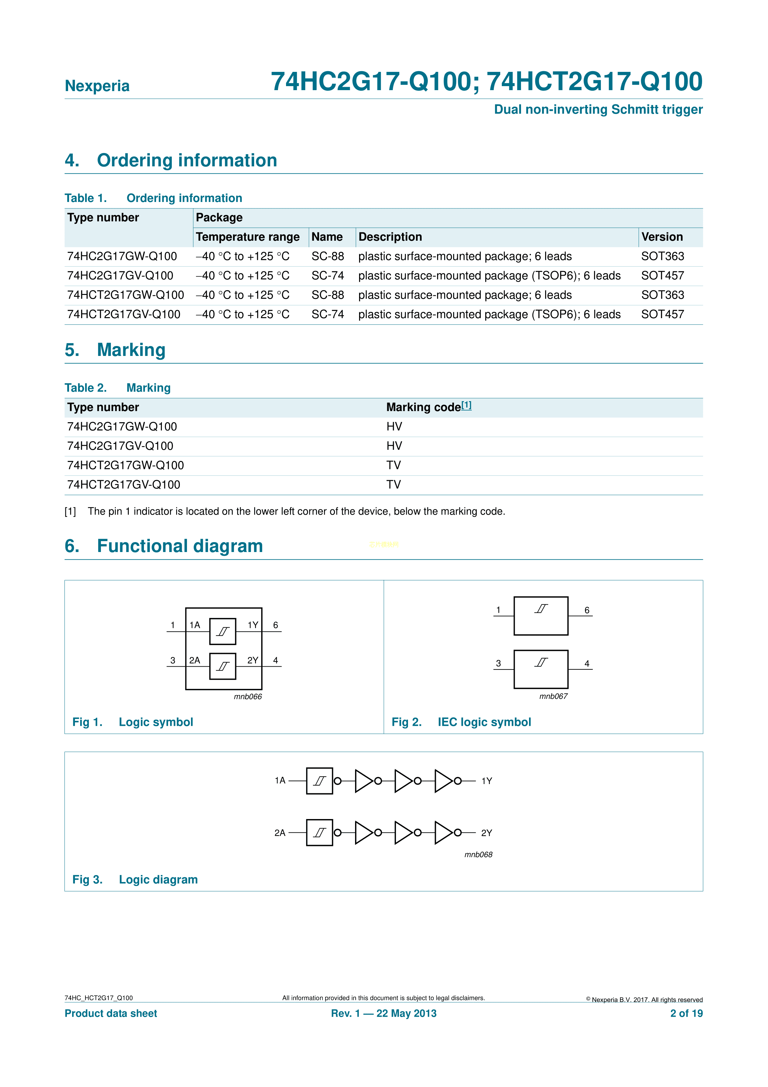 74HC2G17GV-Q100H数据手册SC-74封装Nexperia(安世)PDF规格书,中英文下