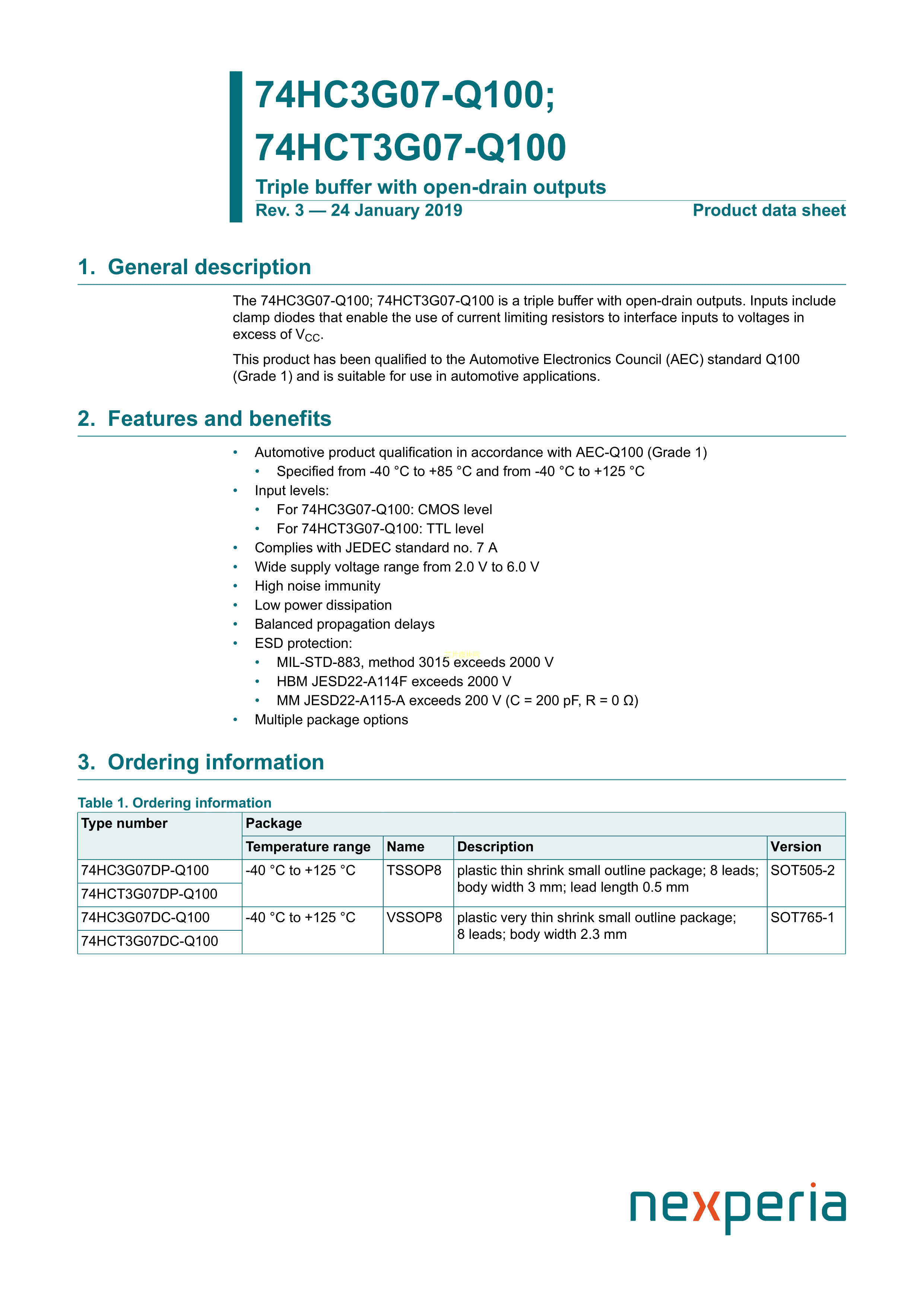 74HC3G07DP-Q100H数据手册TSSOP-8封装Nexperia(安世)PDF规格书,中英