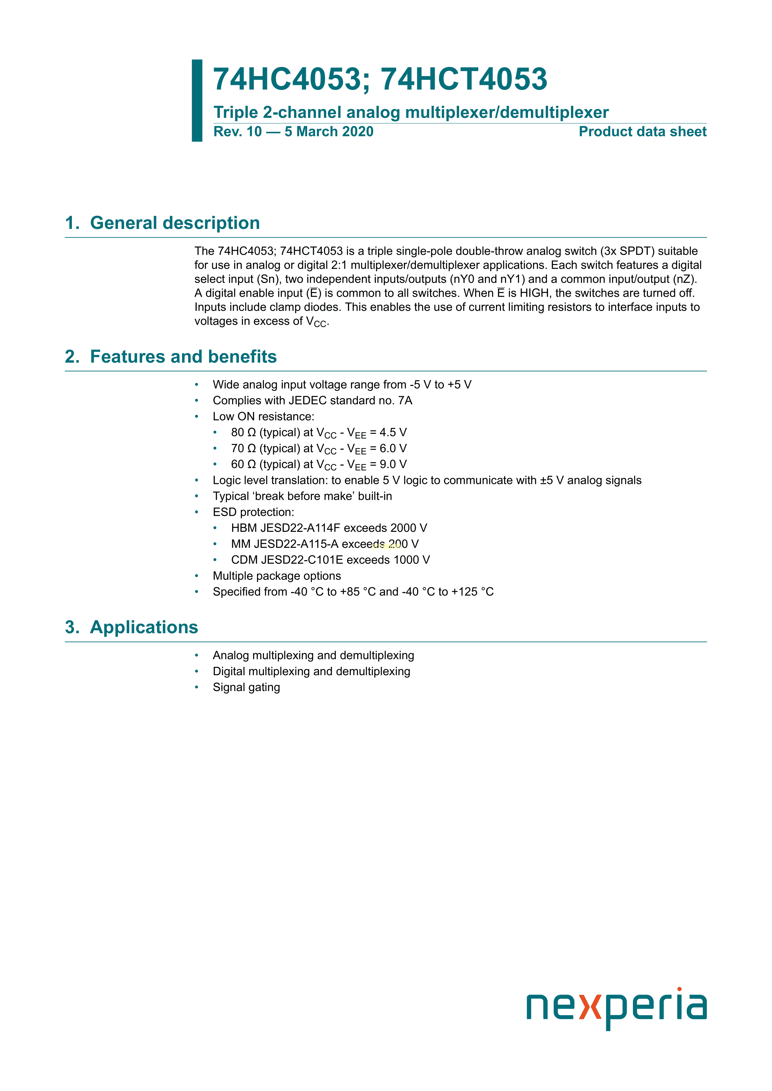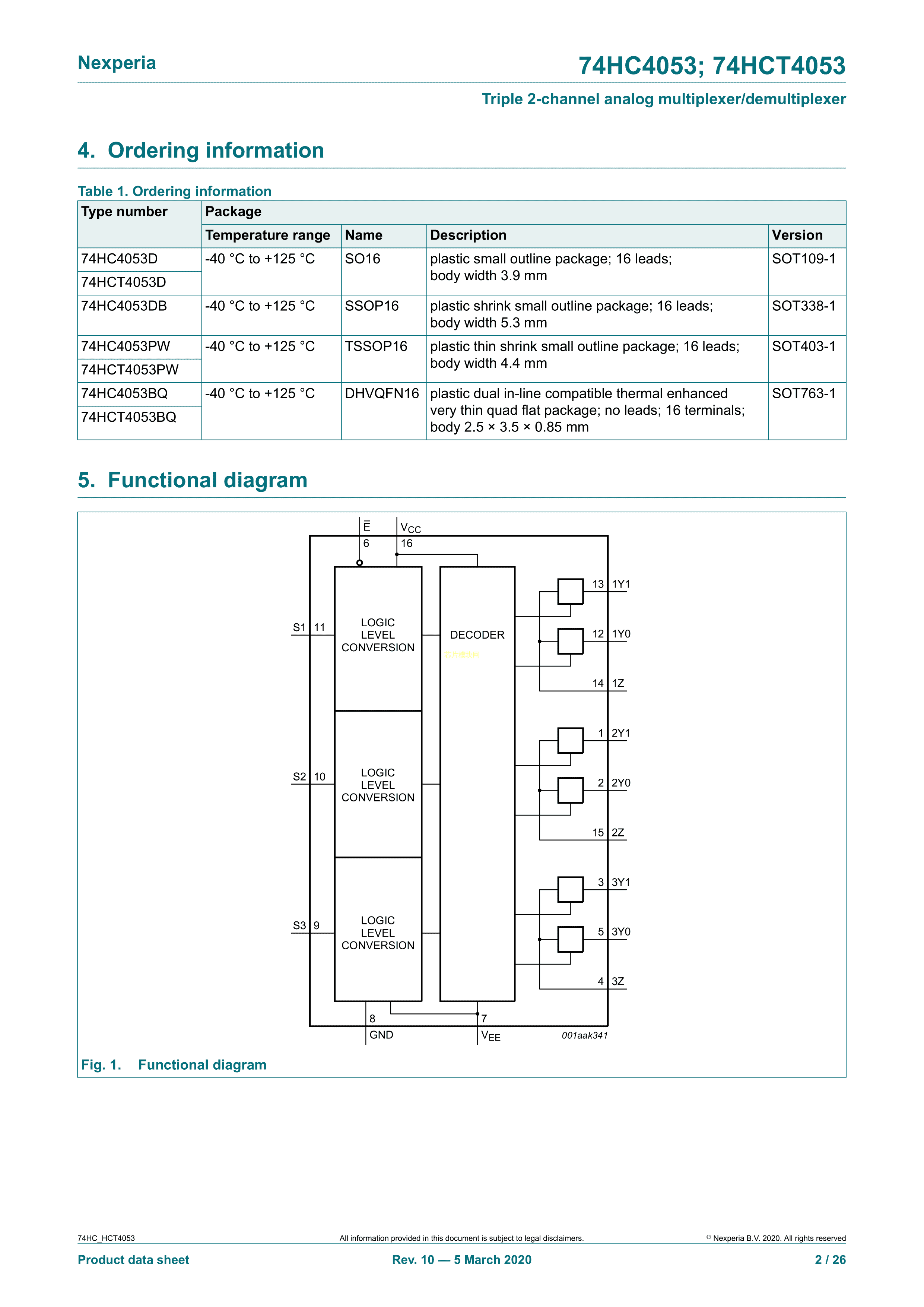 74HC4053D652数据手册SO-16封装Nexperia(安世)PDF规格书,中英文下载