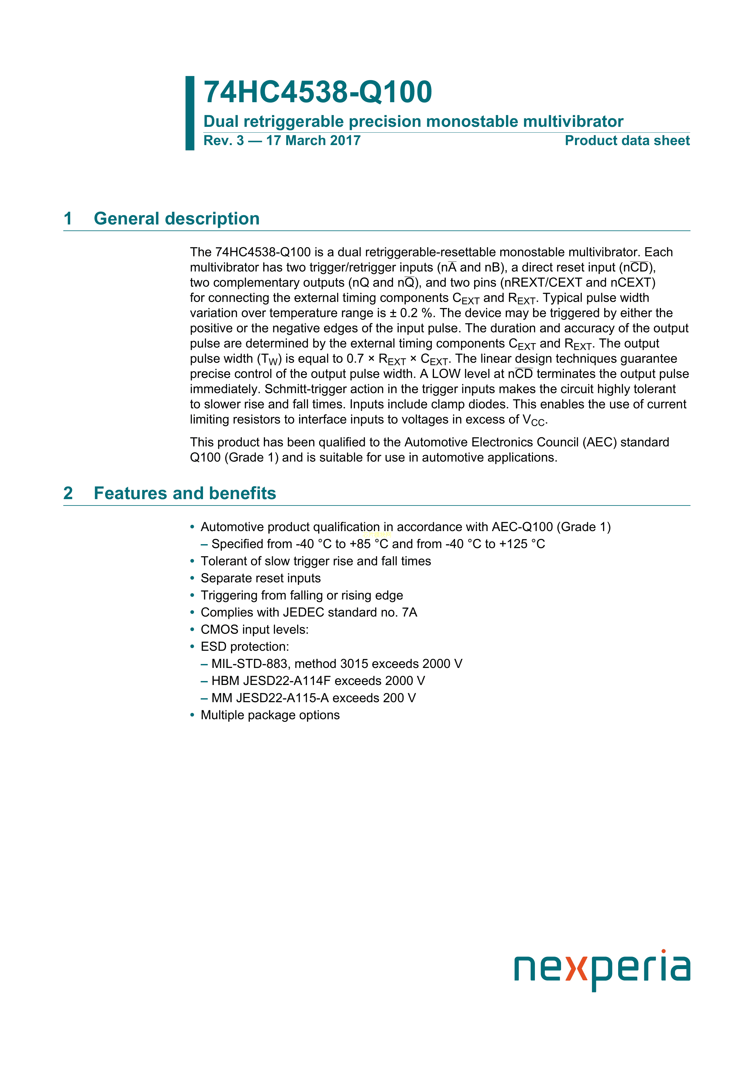 74HC4538D-Q100118数据手册SO-16封装Nexperia(安世)PDF规格书,中英文