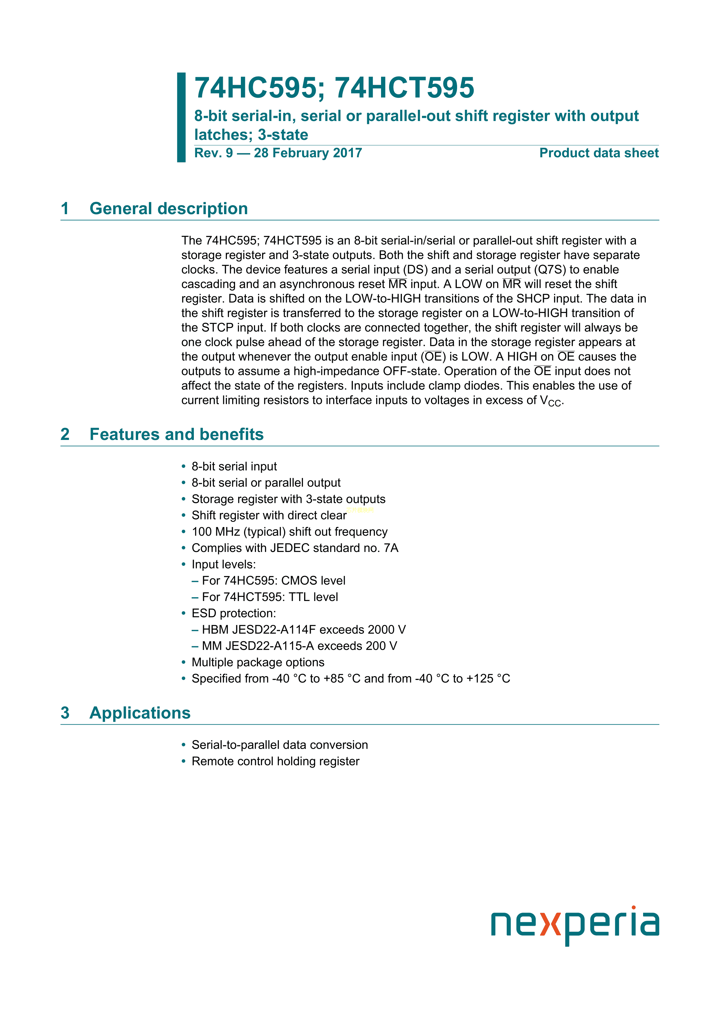 74HC595PW118数据手册TSSOP-16封装Nexperia(安世)PDF规格书,中英文下载