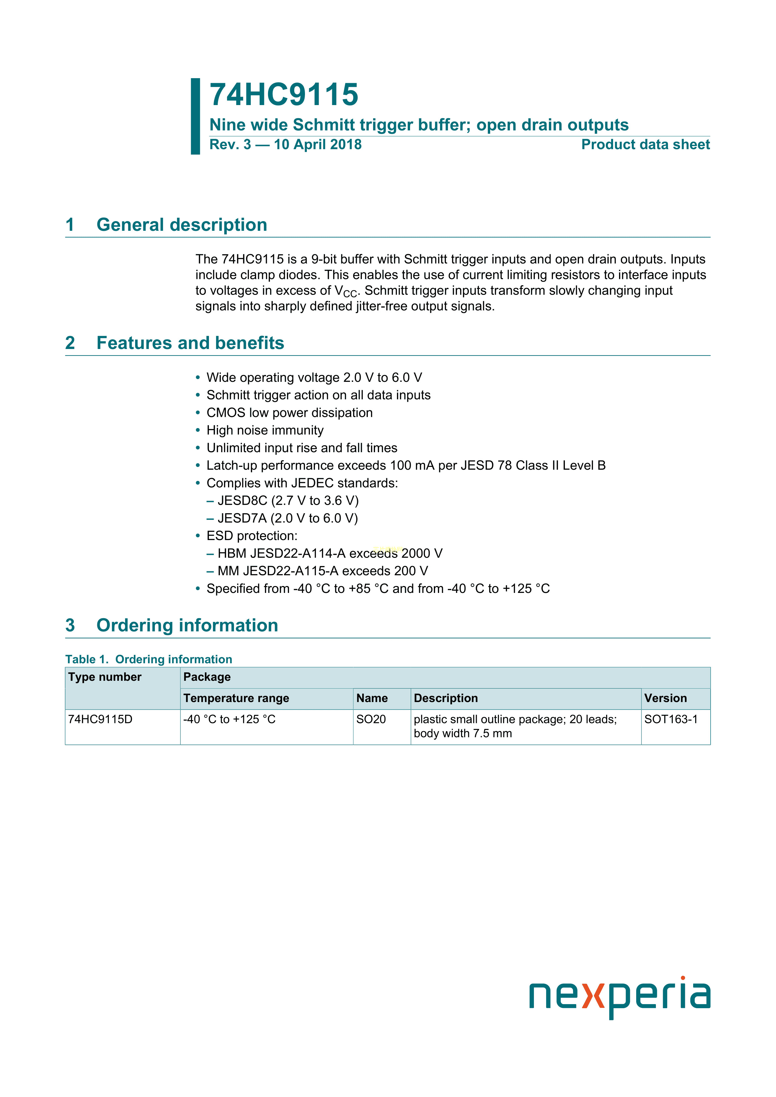 74HC9115D112数据手册SO-20封装Nexperia(安世)PDF规格书,中英文下载