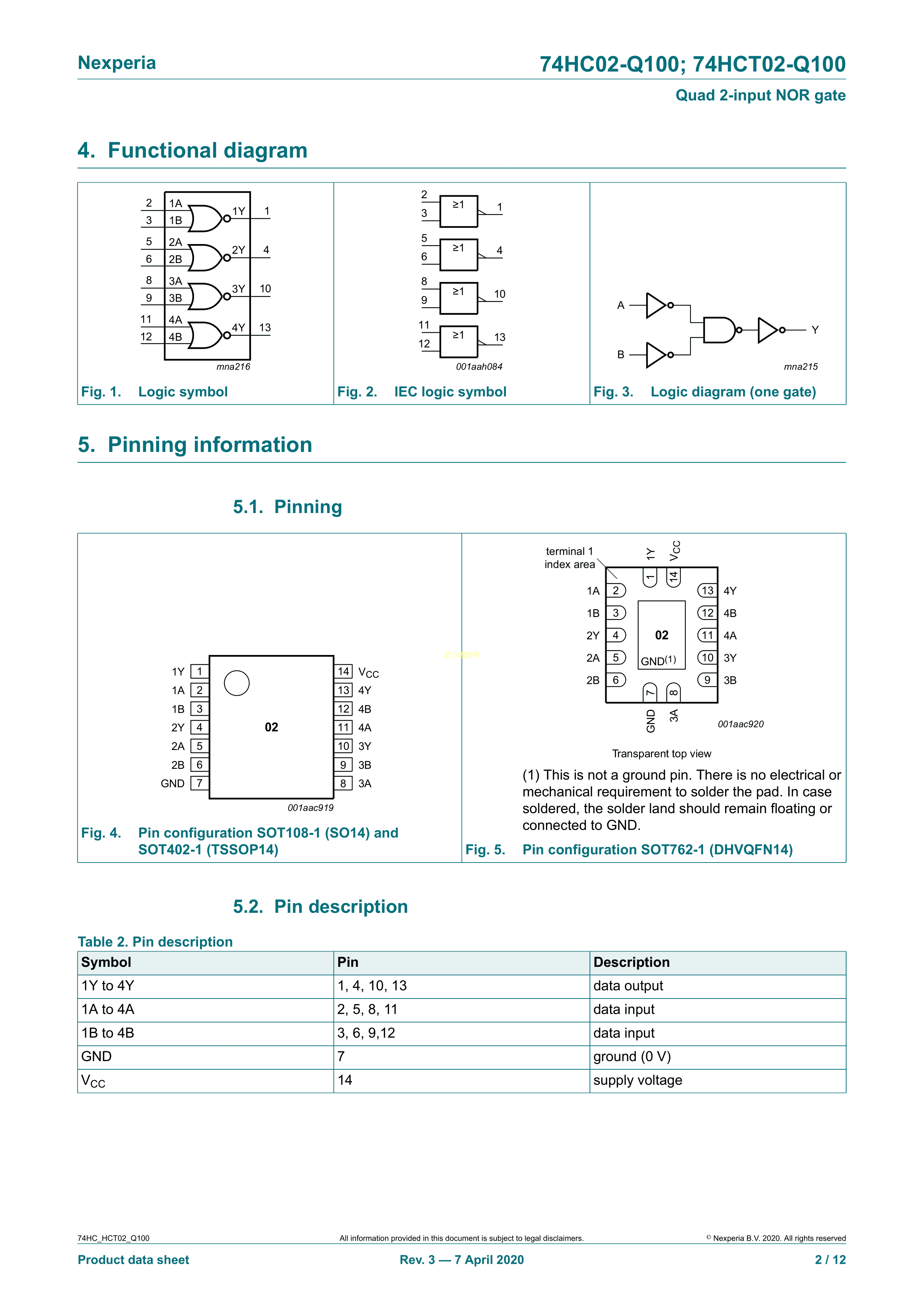 74HCT02BQ-Q100115数据手册DHVQFN-14封装Nexperia(安世)PDF规格书