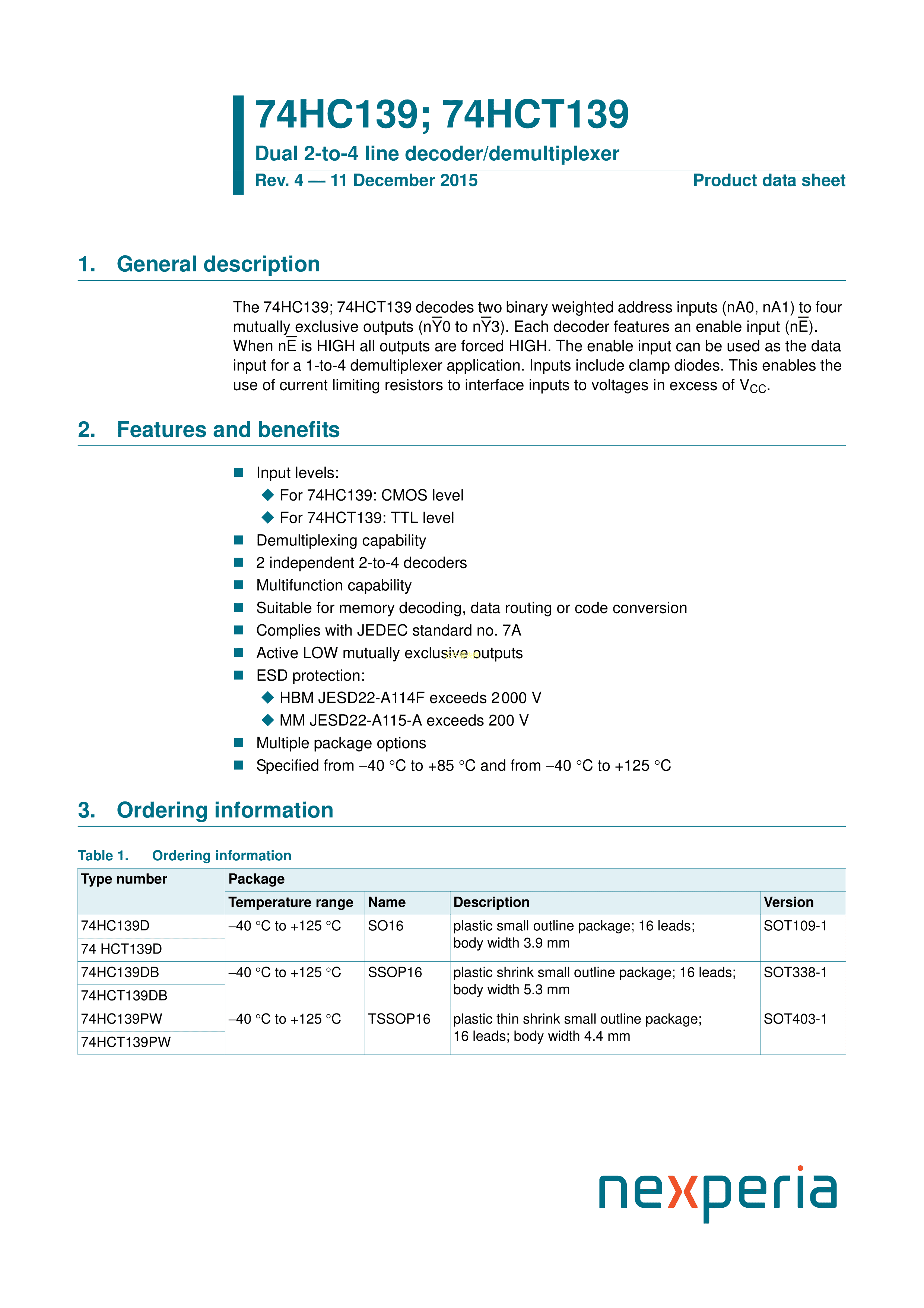 74HCT139PW118数据手册TSSOP-16封装Nexperia(安世)PDF规格书,中英文下