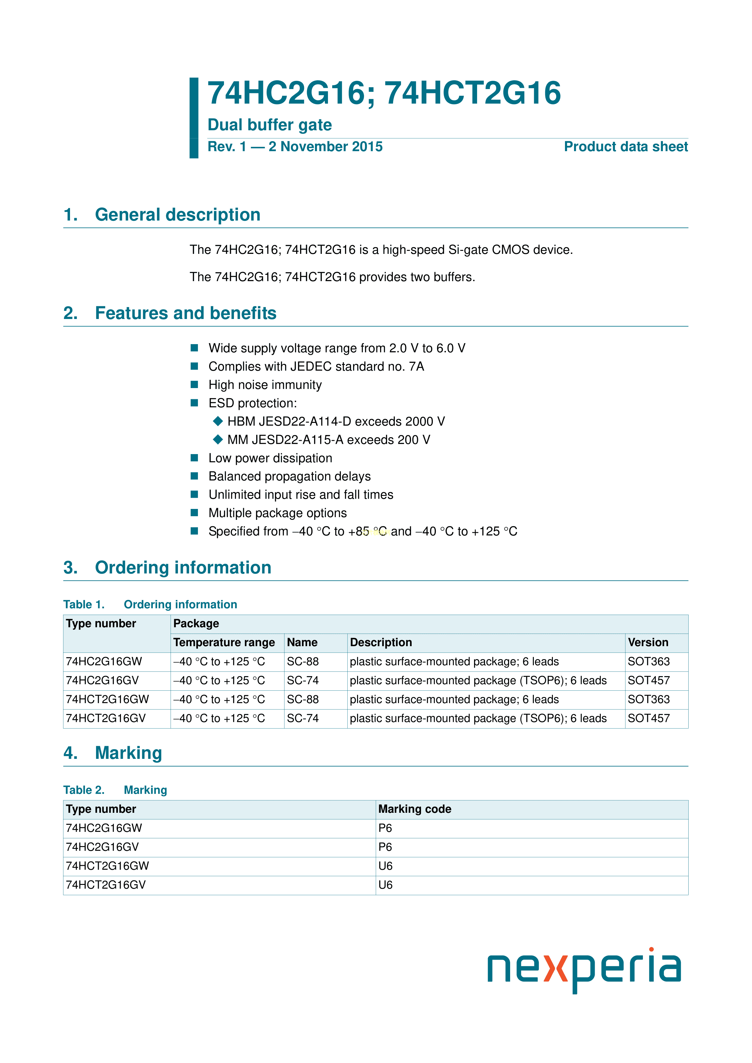 74HCT2G16GWH数据手册SOT-363(SC-88)封装Nexperia(安世)PDF规格书