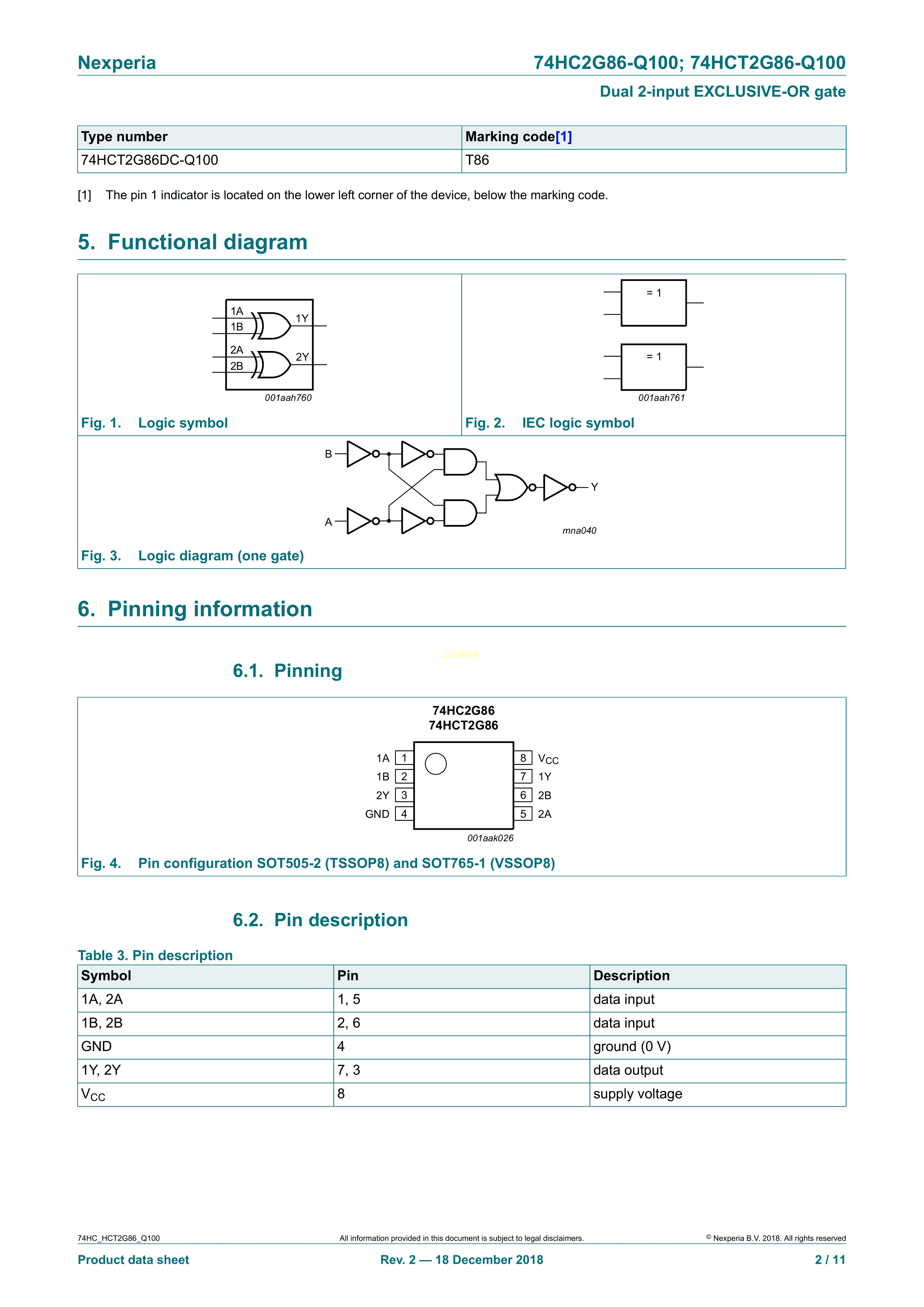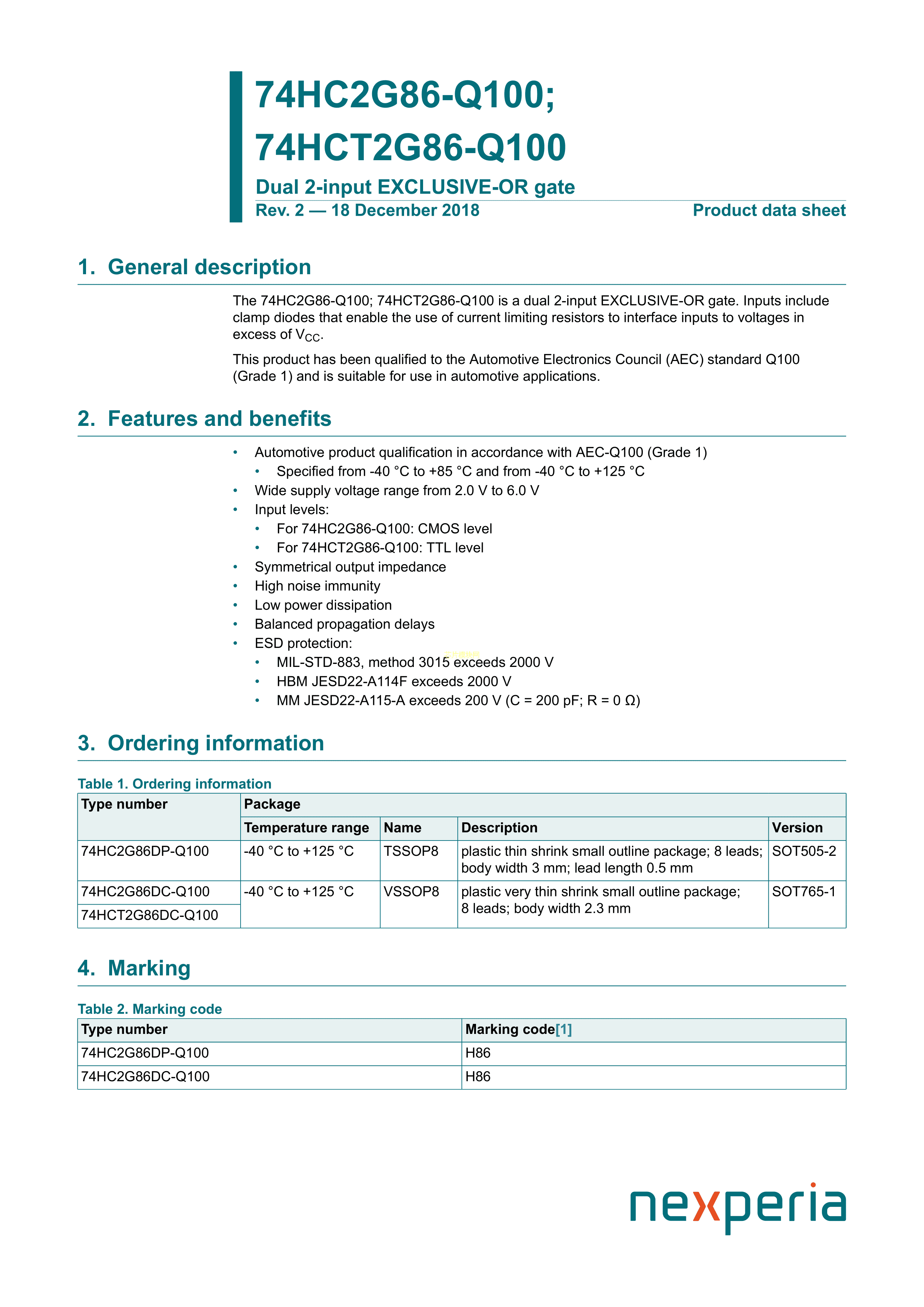 74HCT2G86DC-Q100H数据手册VSSOP-8封装Nexperia(安世)PDF规格书,中