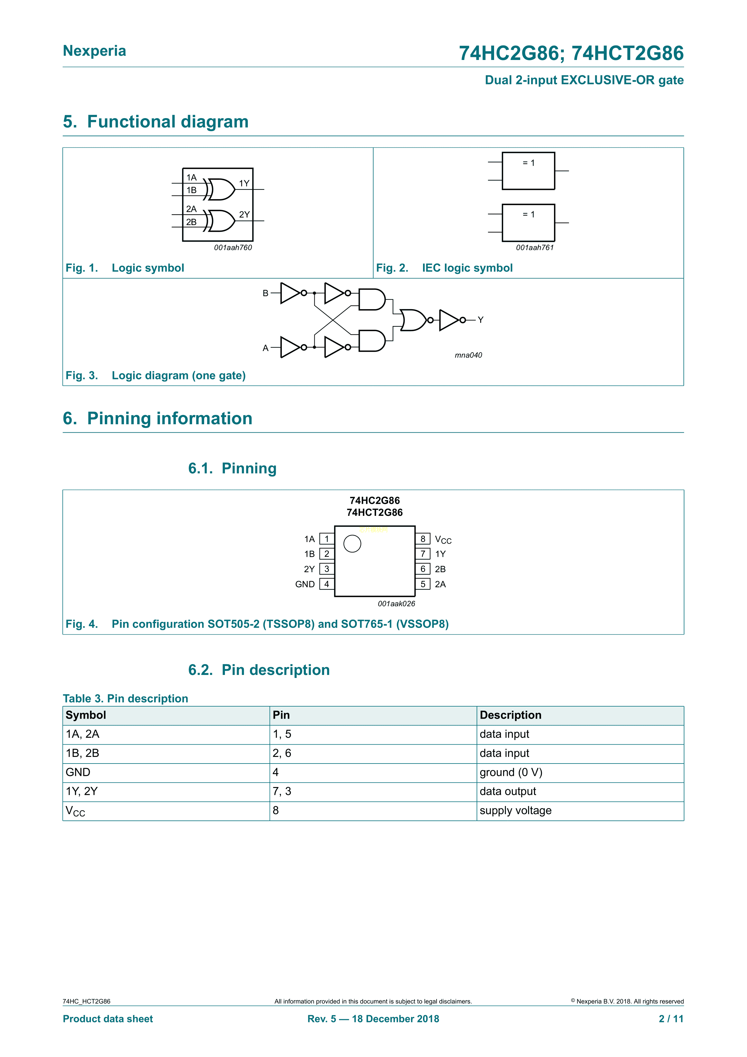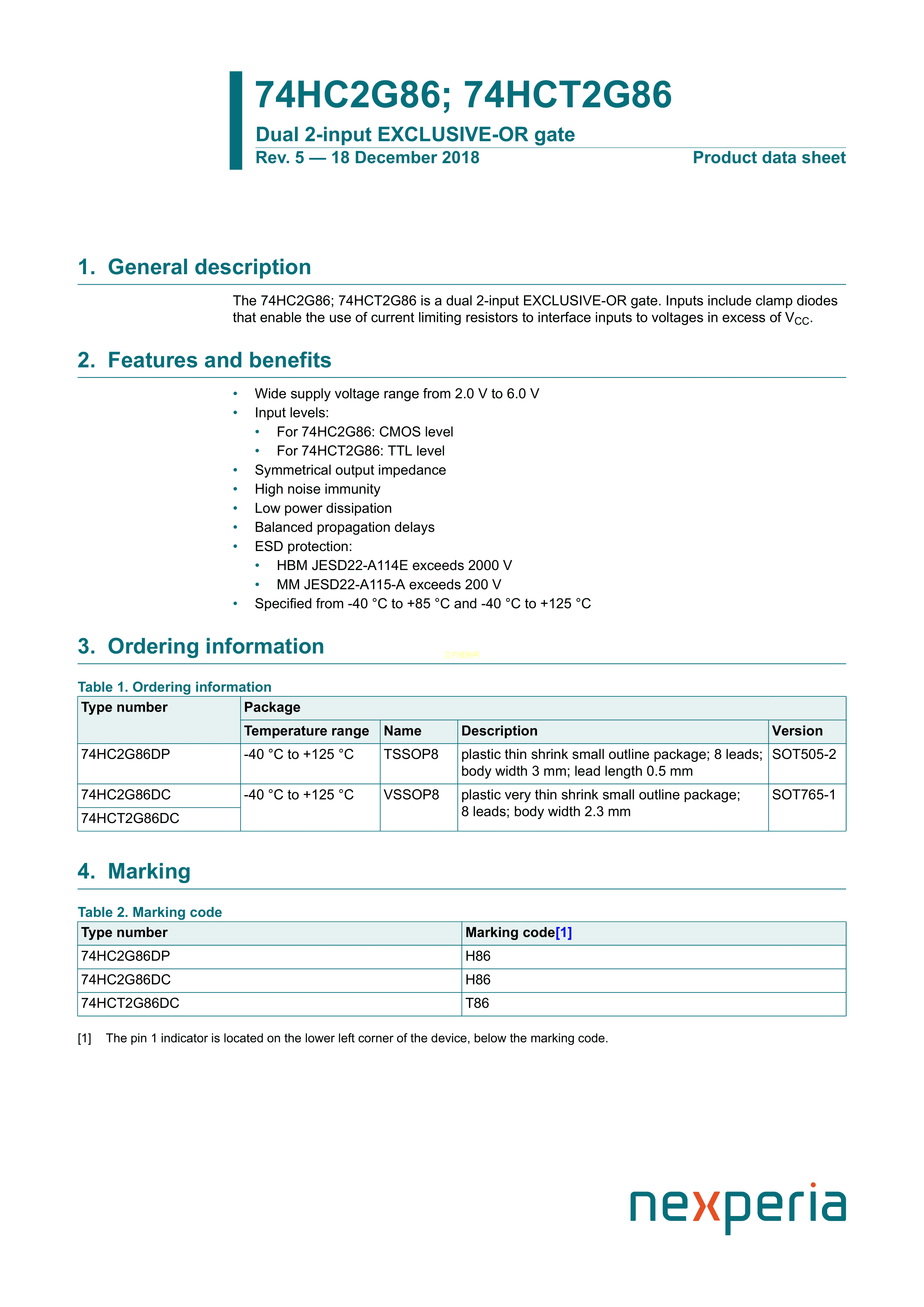 74HCT2G86DC125数据手册VSSOP-8封装Nexperia(安世)PDF规格书,中英文下