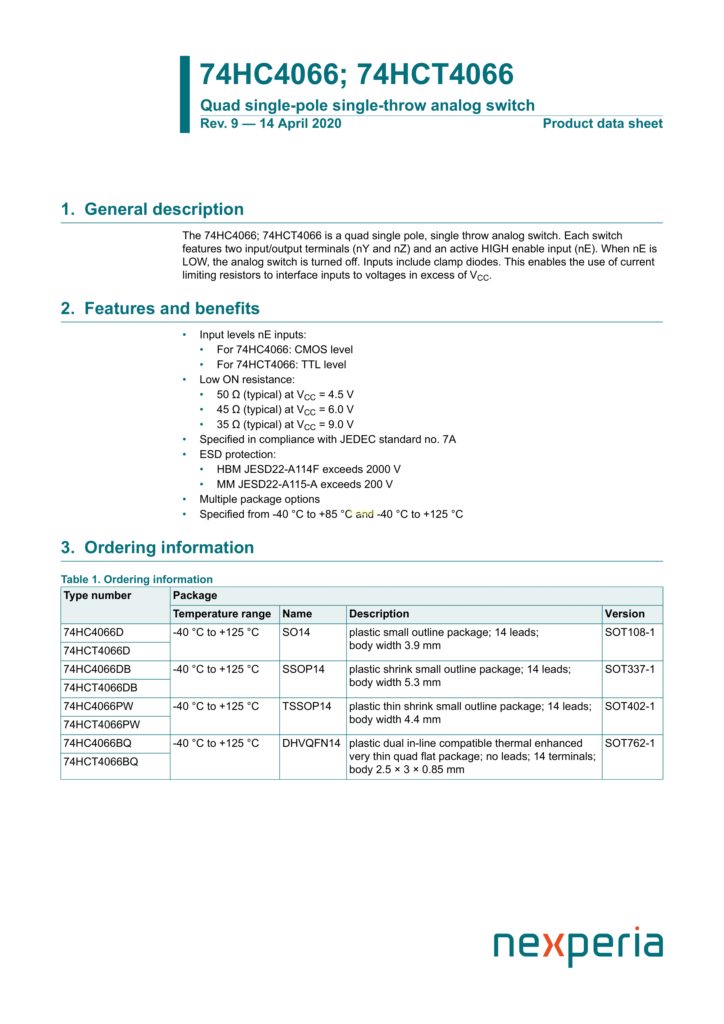 74HCT4066D112数据手册SO-14封装Nexperia(安世)PDF规格书,中英文下载