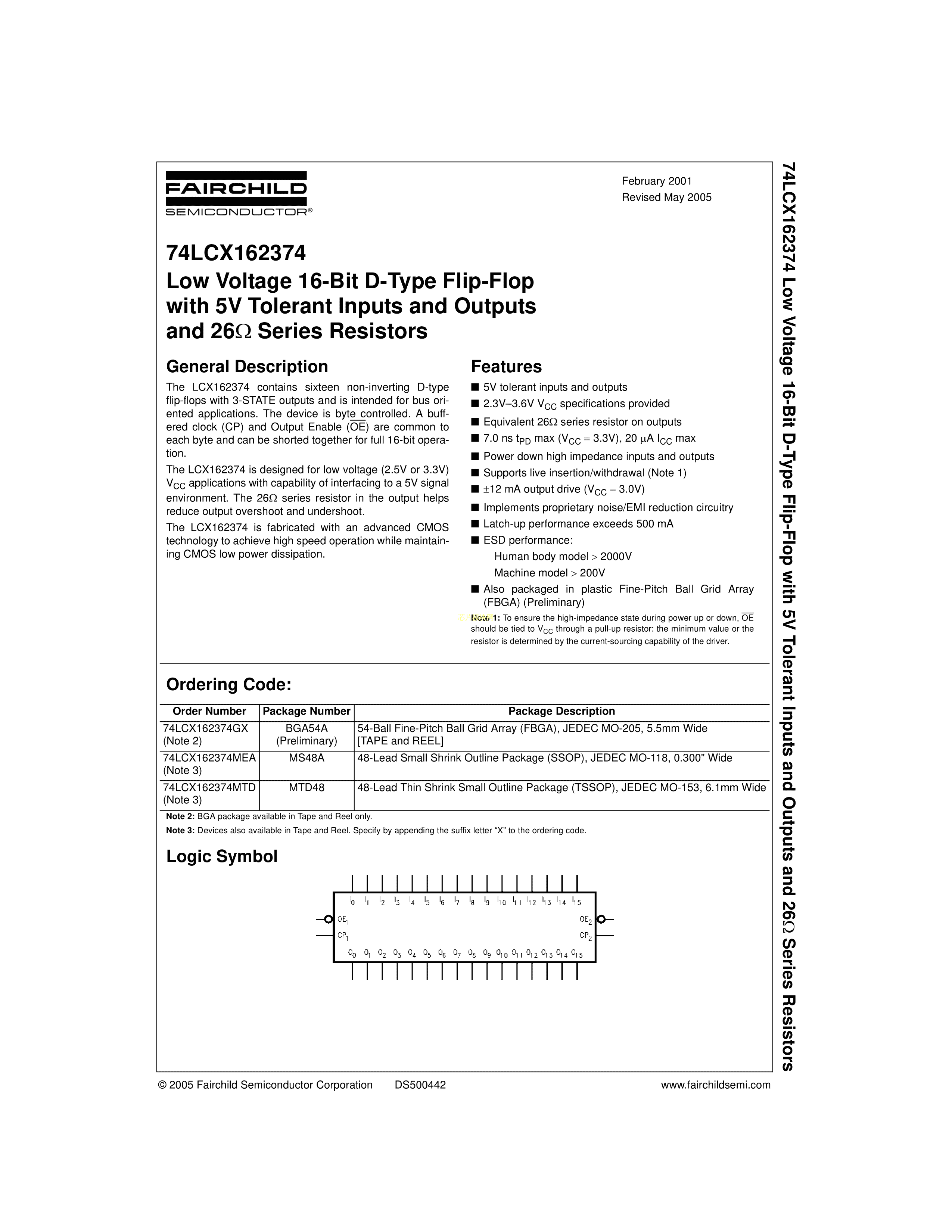 74LCX162374MTDX数据手册TSSOP-48封装onsemi(安森美)PDF规格书,中英文