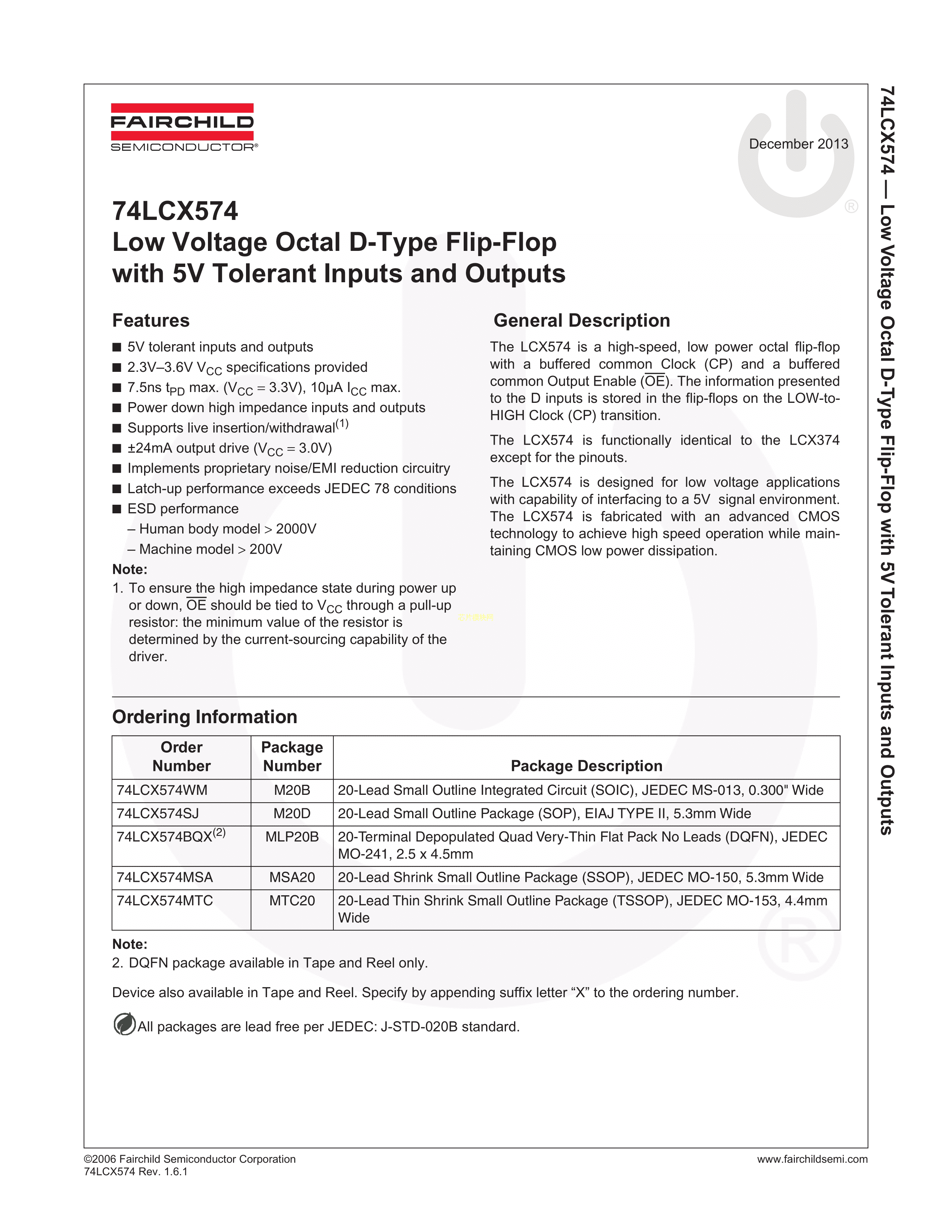 74LCX574MTC数据手册TSSOP-20封装onsemi(安森美)PDF规格书,中英文下载
