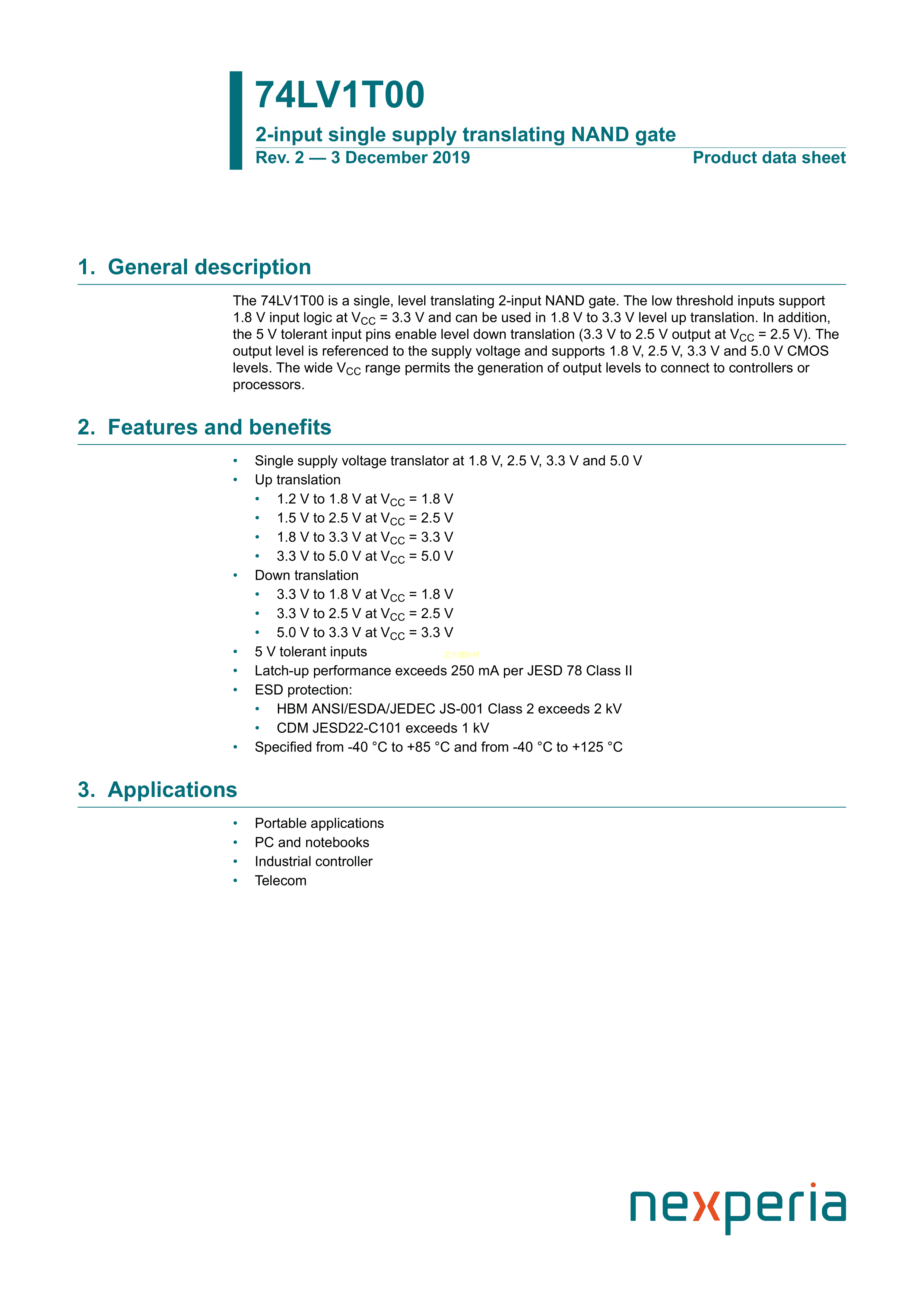 74LV1T00GXH数据手册X2SON-5封装Nexperia(安世)PDF规格书,中英文下载