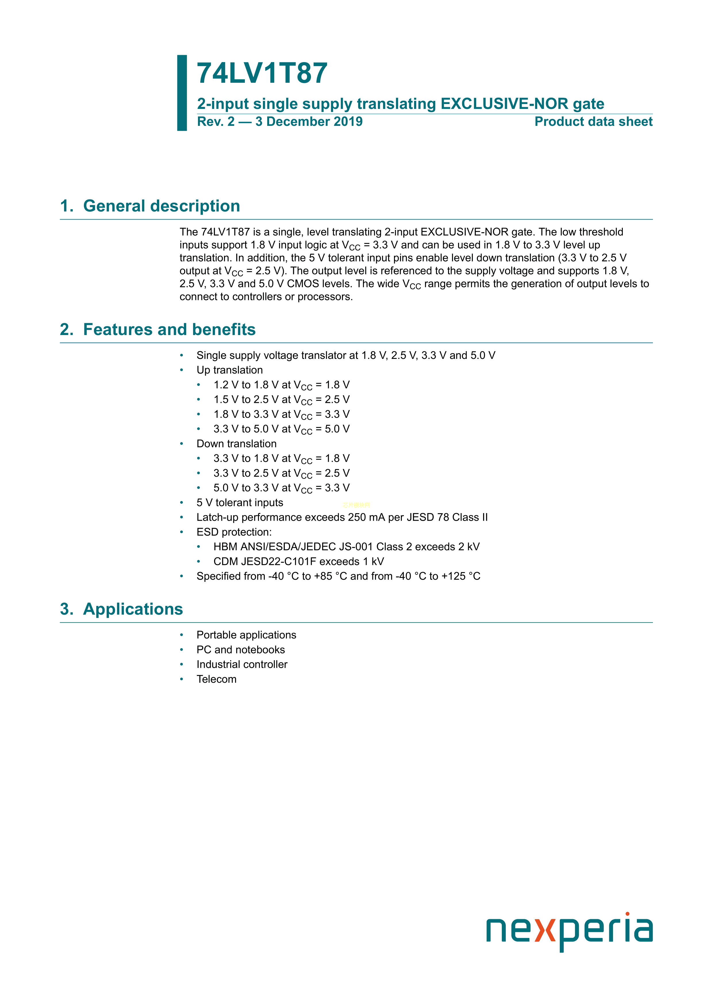 74LV1T87GXH数据手册X2SON-5封装Nexperia(安世)PDF规格书,中英文下载