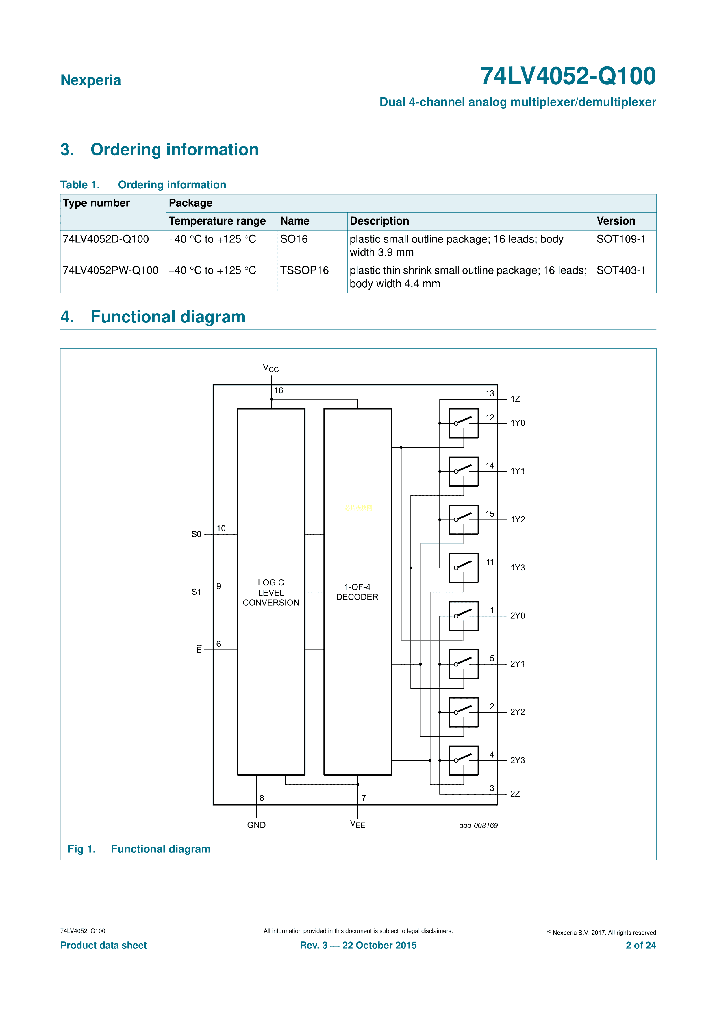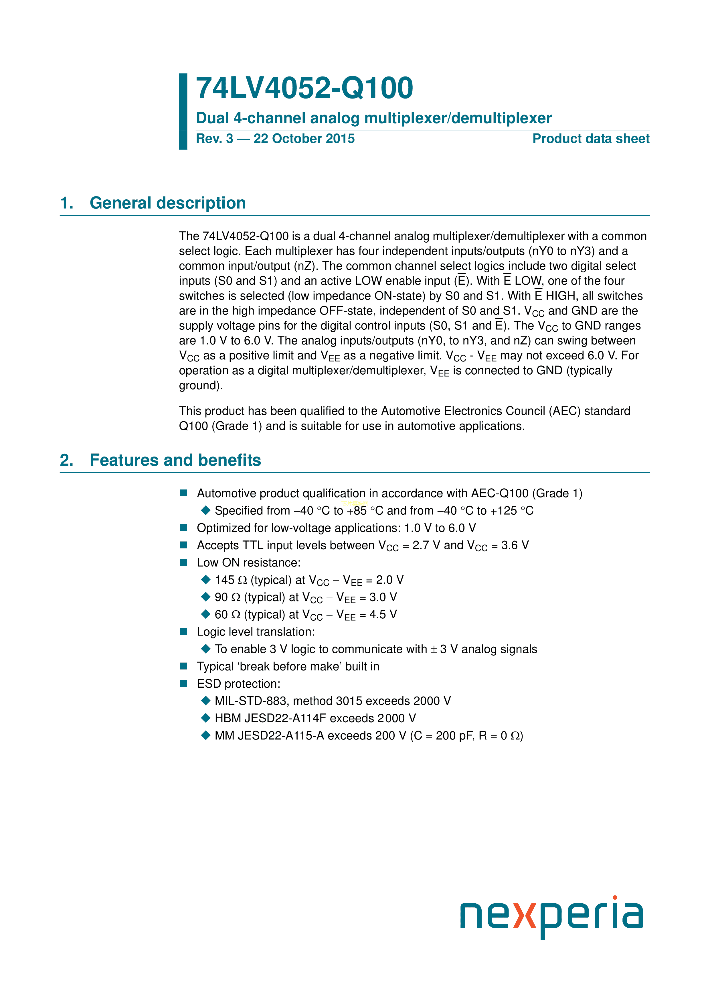 74LV4052D-Q100J数据手册SO-16封装Nexperia(安世)PDF规格书,中英文下载