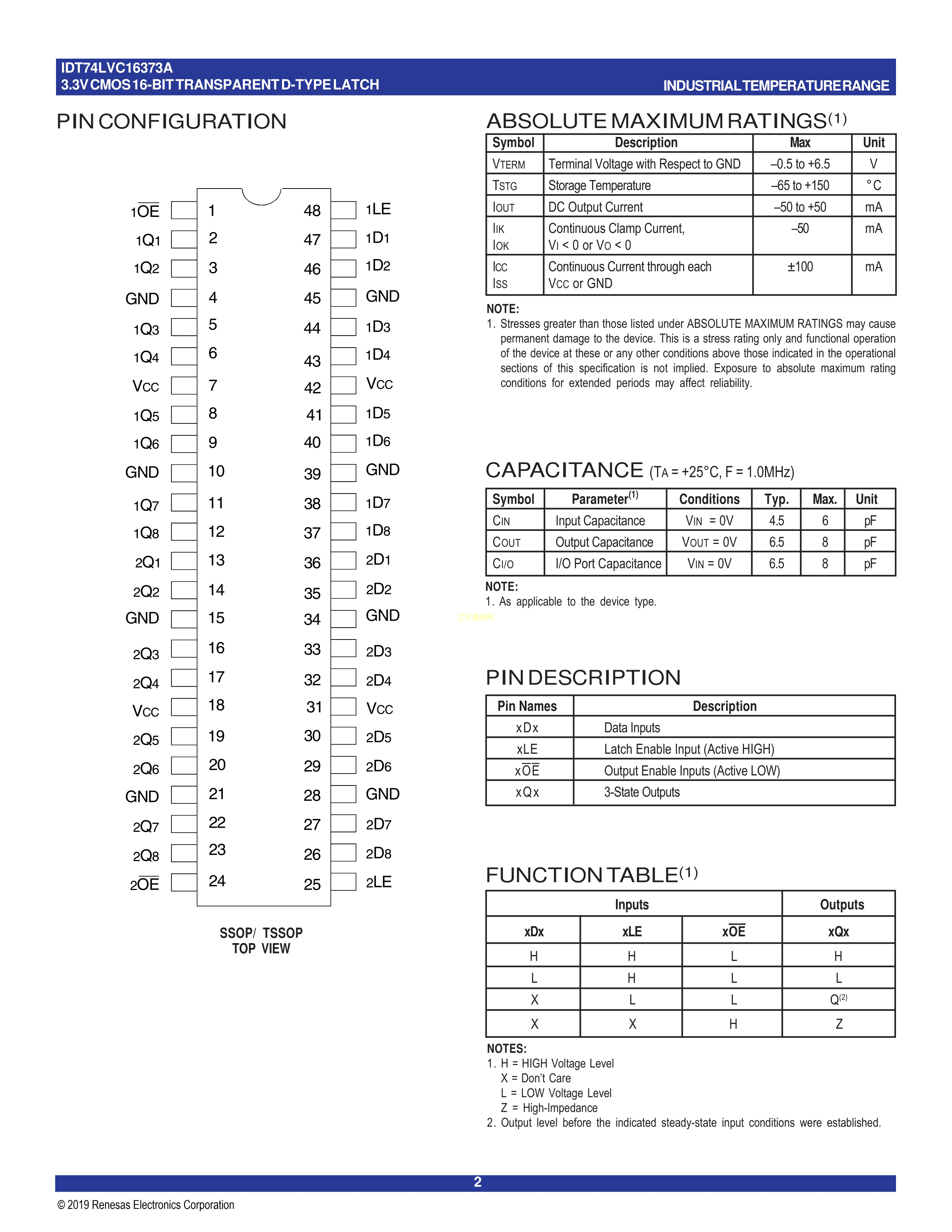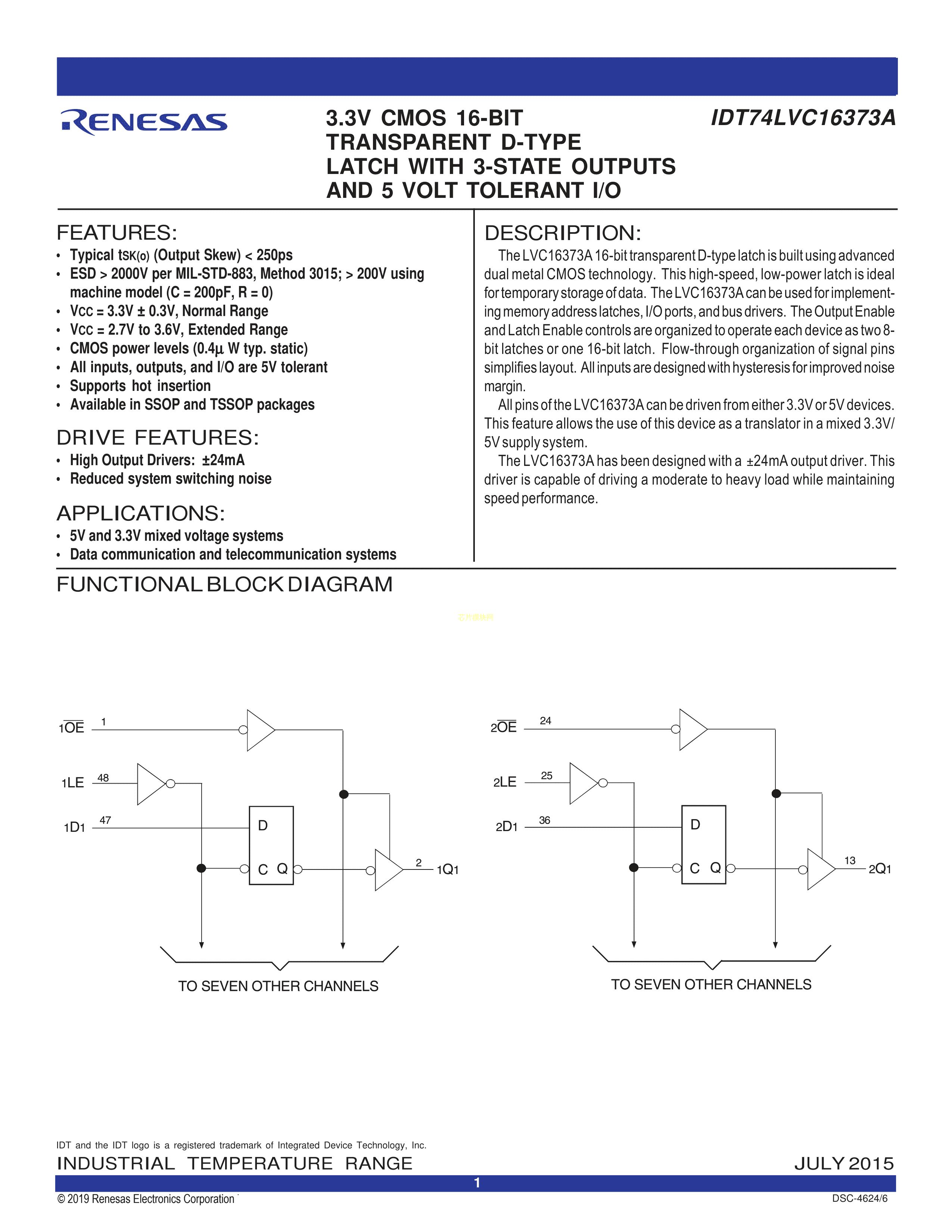 74LVC16373APVG8数据手册SSOP-48封装RENESAS(瑞萨)-IDTPDF规格书,