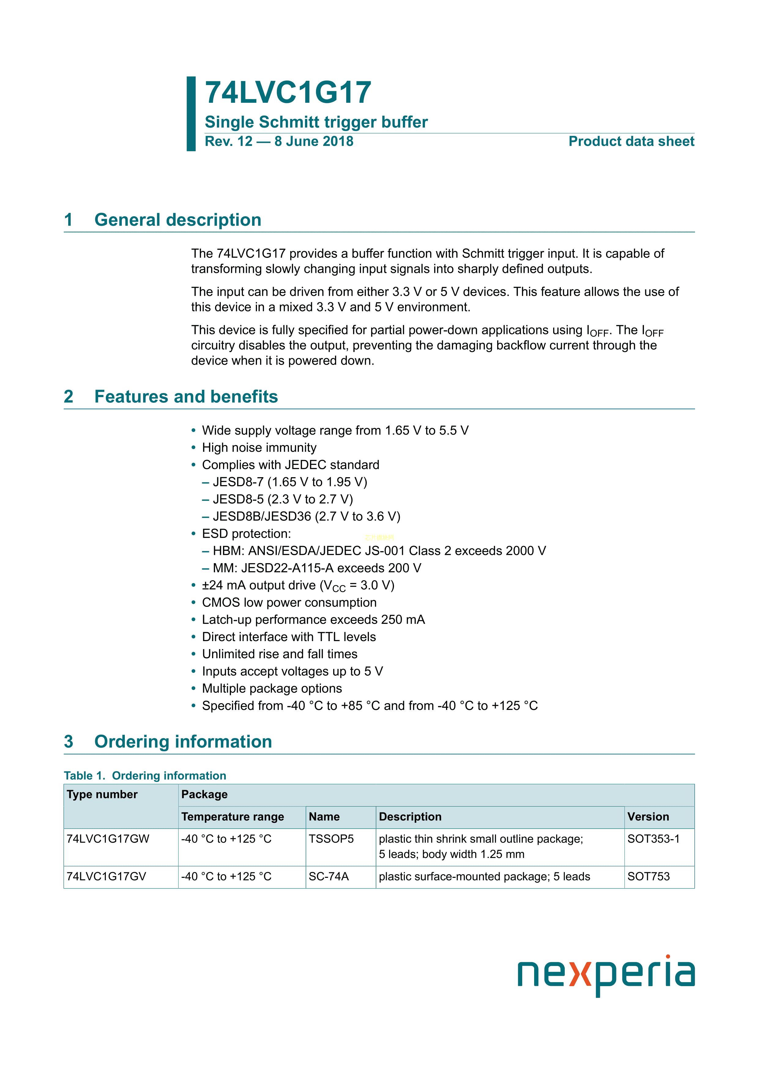 74LVC1G17GM132数据手册XSON-6封装Nexperia(安世)PDF规格书,中英文下载